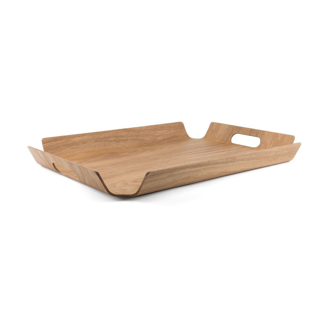 Het Bredemeijer Madera dienblad met retro design is rechthoekig van vorm en heeft opstaande randen. Hij is gemaakt van licht, maar zeer sterk hout en voorzien van twee uitsparingen om het dienblad mee te dragen. Makkelijk schoon te maken met een vochtig doekje. Het dienblad is ook in maat M en en L verkrijgbaar.