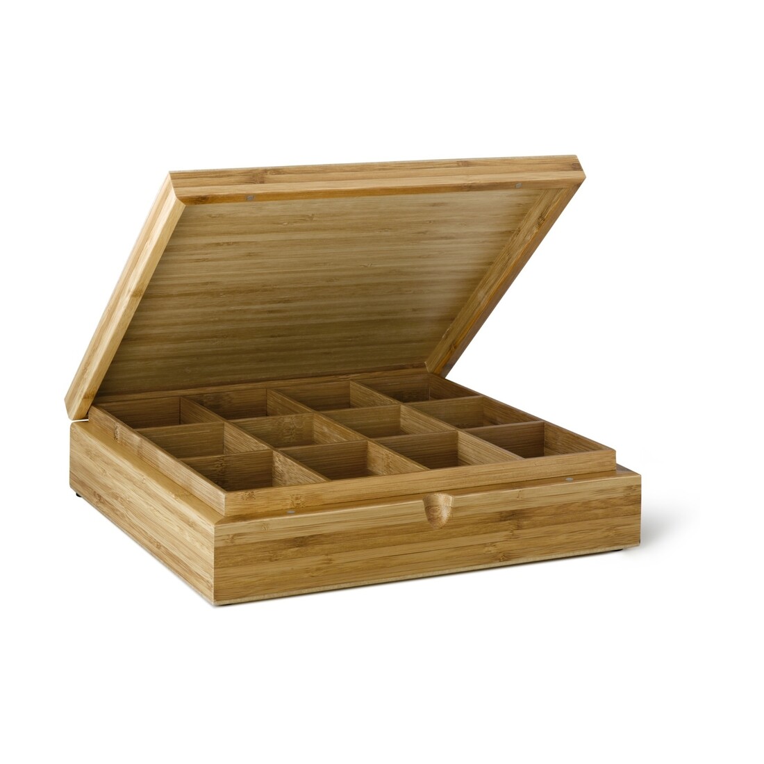 Bredemeijer Universal Theedoos 12-vaks gemaakt van bamboe. Deze theedoos is voorzien van een gesloten deksel.