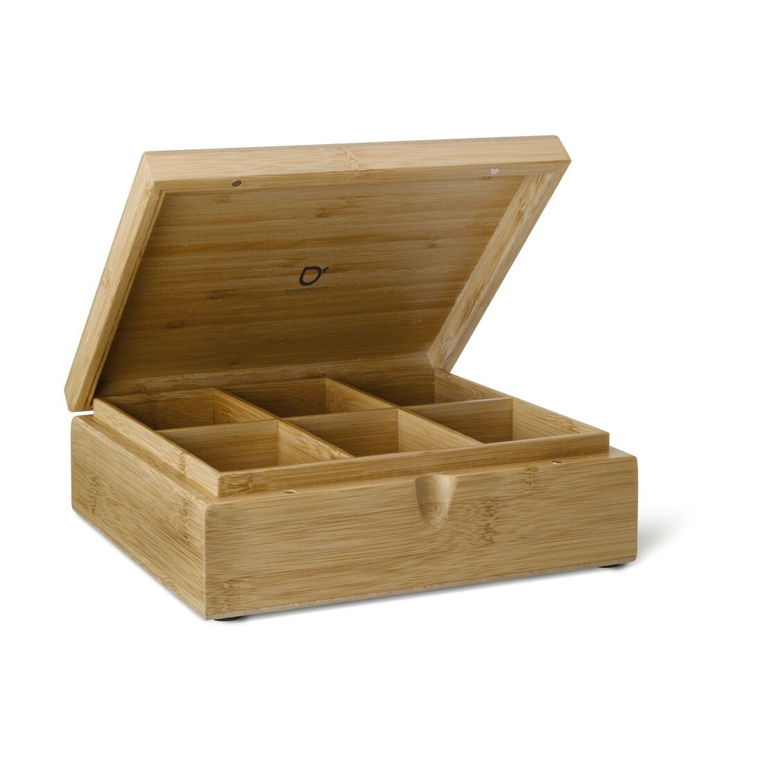 Bredemeijer Universal Theedoos 6-vaks Bamboe. Uiterst geschikt voor al uw favoriete thee. Afmeting 22,5 x 18,5 x 7 cm.