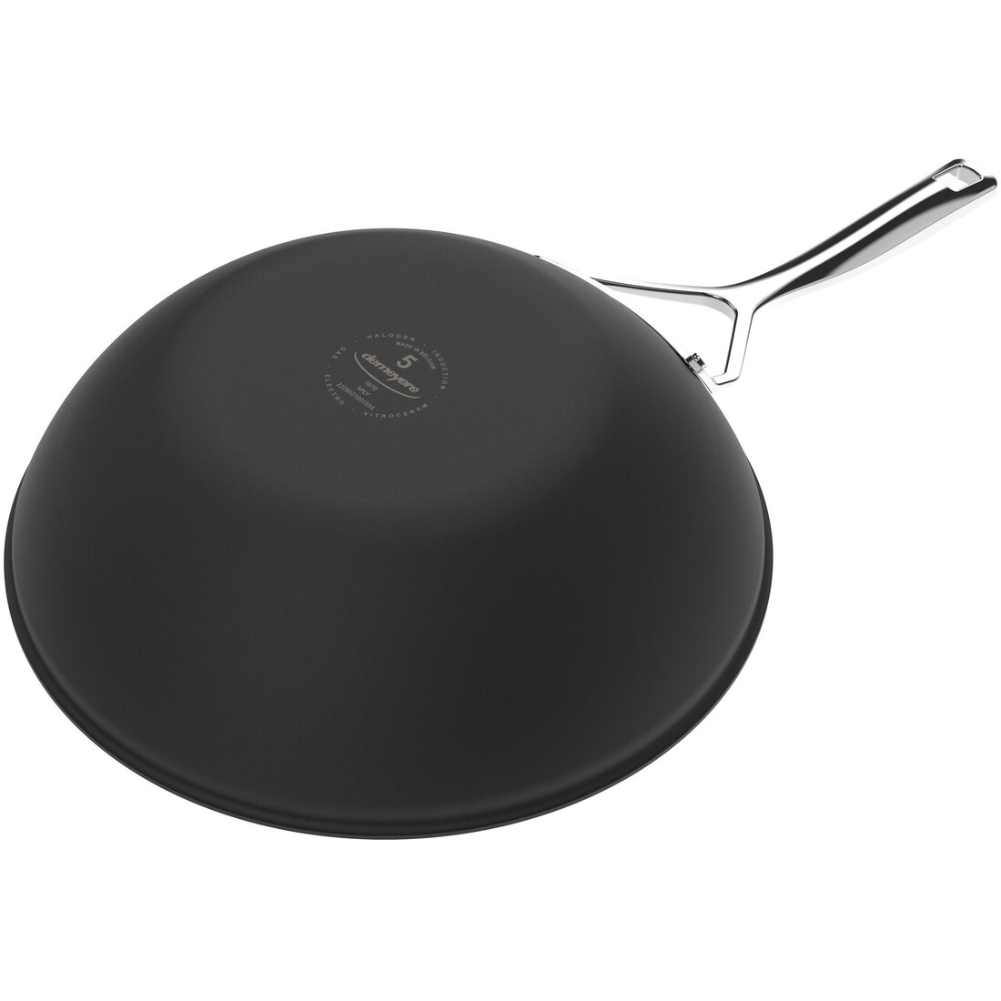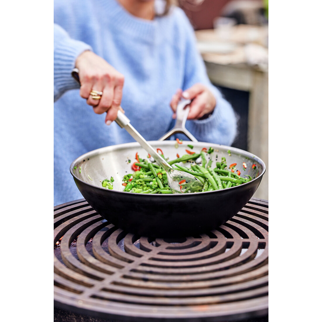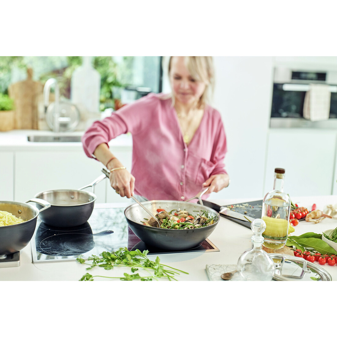 De Demeyere Black 5 pannen zijn jouw nieuwe keukenhelden voor binnen én buiten. De pannen hebben een stijlvolle mat zwarte coating, die ook nog eens hittebestendig is tot 400°C. De roestvrijstalen binnenzijde zorgt ervoor dat jij gerechten met de beste smaken klaarmaakt. De pannen zijn opgebouwd uit 5 lagen, wat zorgt voor een perfecte warmteverdeling en geweldige prestaties in de keuken. Deze wokpan gebruik je om de lekkerste roerbakgerechten of eenpansmaaltijden klaar te maken. De pan heeft een extra grote handgreep, waardoor je deze ook gemakkelijk met hittebestendige handschoenen vastpakt. De pan heeft een diameter van 30 cm en een inhoud van 3 liter. Geschikt voor iedere warmtebron!