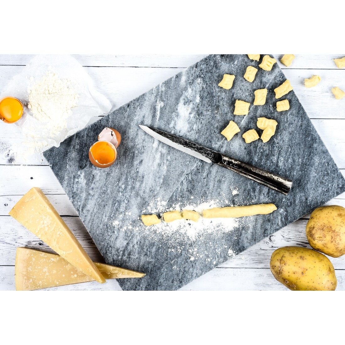 Mooi vormgegeven mens , scherp maar niet vlijmscherp. Ergonomisch iets minder maar zeer ok voor middellang gebruik. Fijn mes om in de keuken te hebben !
