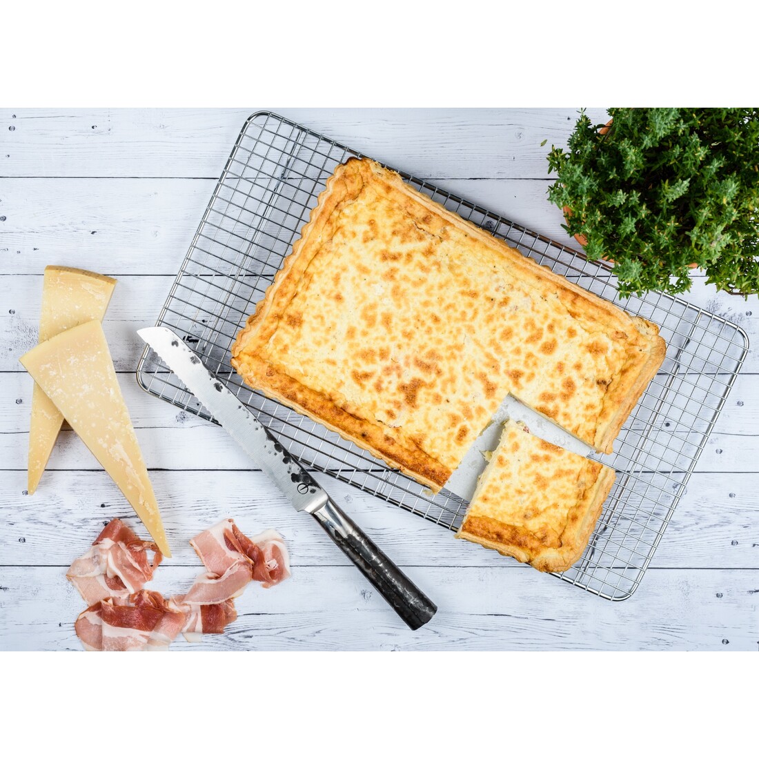 Forged messen worden met de hand gemaakt van enkel hoge kwaliteit materialen. Zo wordt zowel handvat als lemmet gemaakt van gesmeed staal en nauwkeurig op elkaar gelast. Dit prachtige en unieke broodmes is hier een goed voorbeeld van. Naast warm- en zacht brood snijdt dit mes ook perfect een meloen, tomaat of ananas.