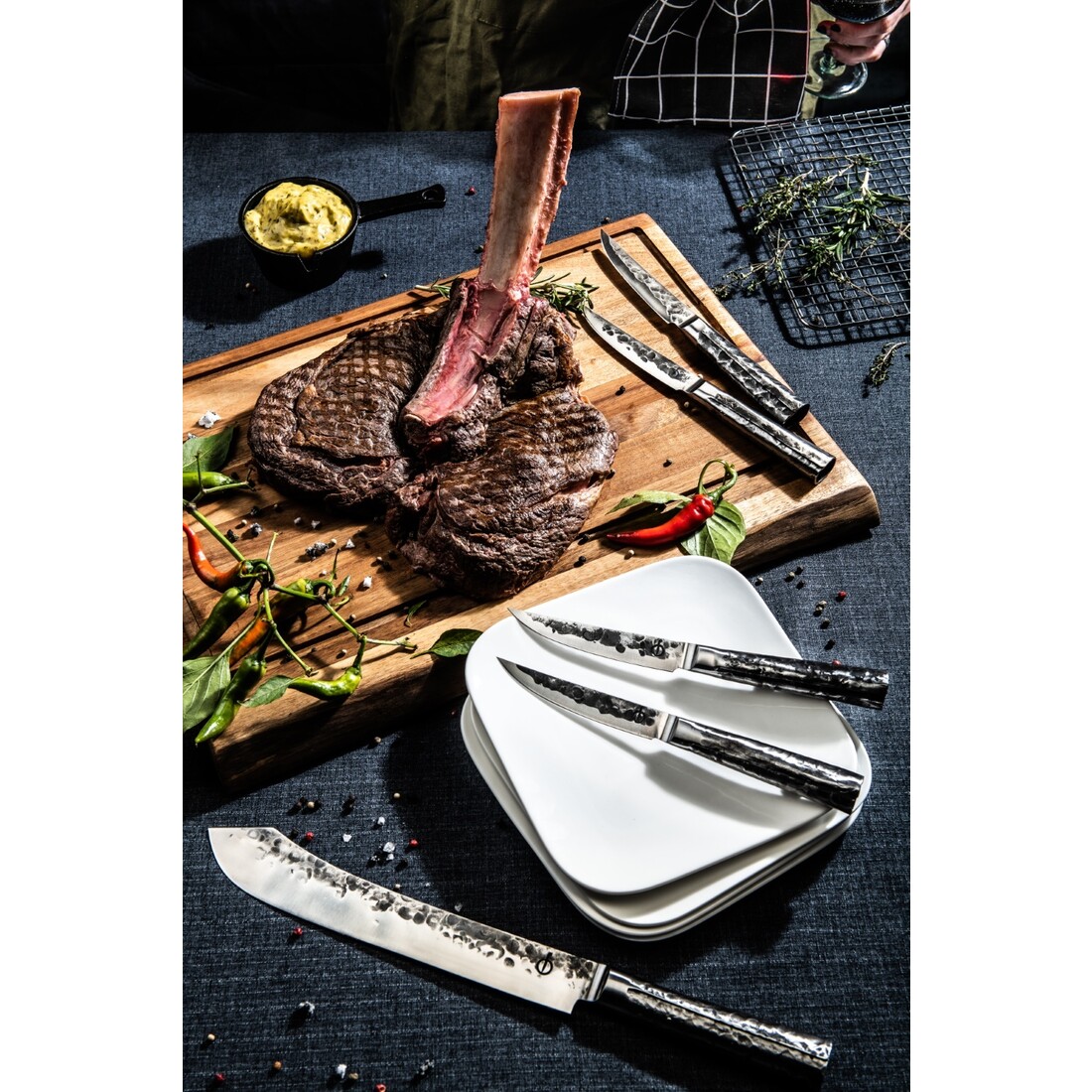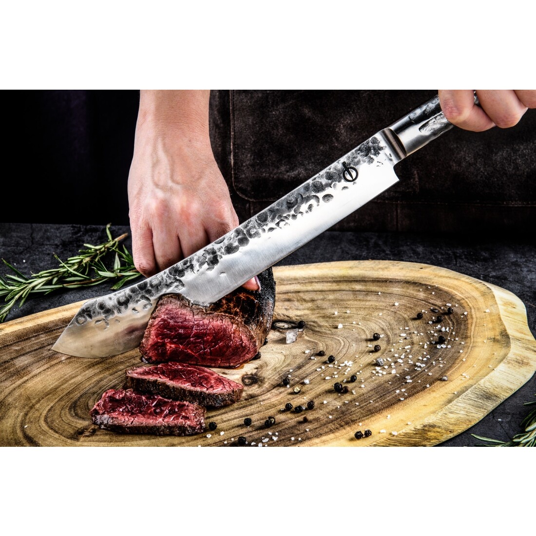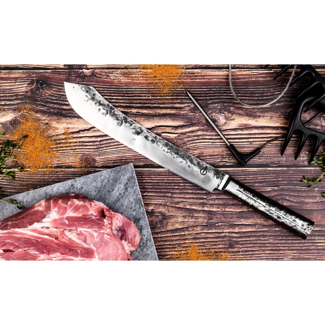 Het Forged Intense Slagersmes is het grootste mes uit de Intense collectie. Met een lemmet van maar liefst 25,5cm maakt dit model zeker indruk. De snede loopt mooi rond weg en kan perfect gebruikt worden voor het afsnijden van grote stukken vlees. Perfect tijdens een goede BBQ! Zoals u van Forged gewend bent wordt het Slagersmes vlijmscherp geleverd. Daarnaast krijgt u ook nog eens 10 jaar garantie op uw aankoop!