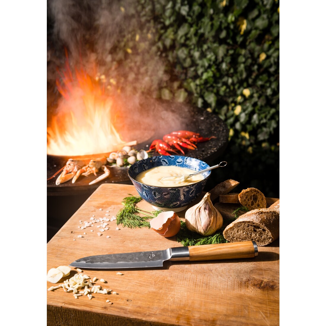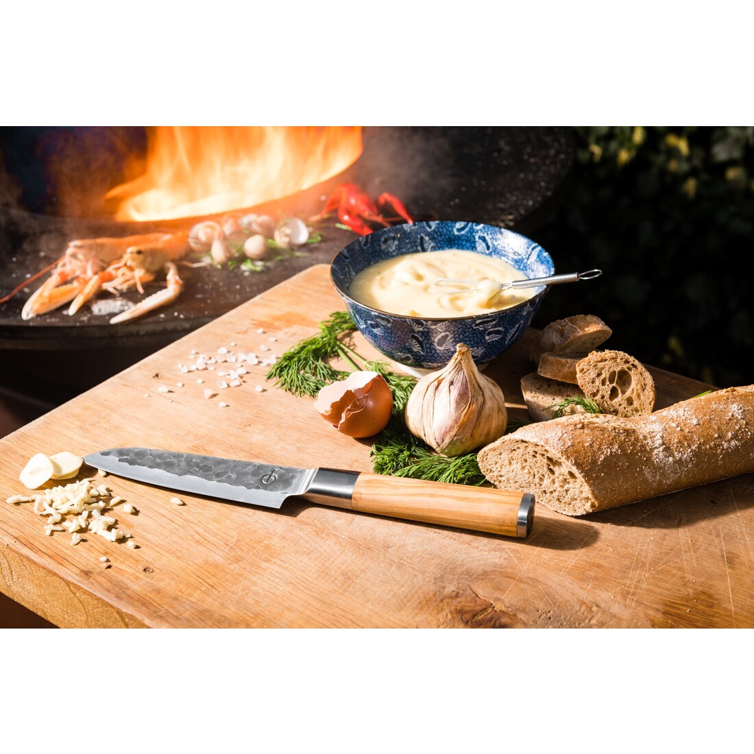 De Olive Forged messen zijn voorzien van een prachtige olijfhouten handgreep. De handgreep is extra opvallend door de doorlopende krop en de toegevoegde pommel op de achterzijde. De pommel is bovendien afgewerkt in dezelfde stijl als het lemmet, waardoor alles één geheel wordt.