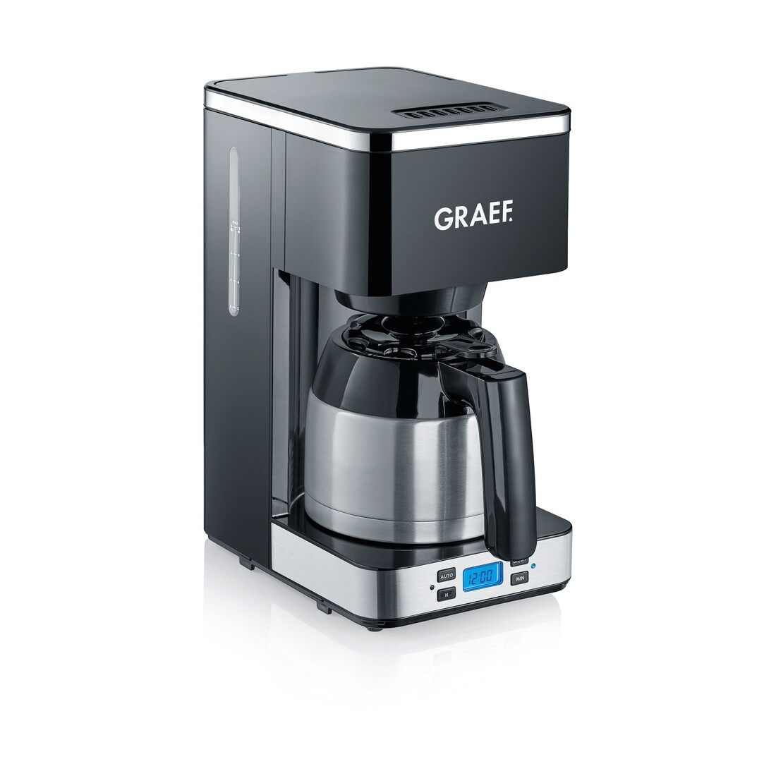 Uniek aan dit apparaat is de instelbare timer, waarmee je zelf bepaalt hoe laat de koffie klaar moet staan. Je zet tot 8 grote of 12 kleine koppen koffie met het Graef filterkoffieapparaat met isoleerkan. De maximale capaciteit van dit apparaat is 1 liter. Het apparaat heeft een eenvoudige bediening en de warmhoudfunctie houdt de koffie extra lang warm. Blijft het te lang staan? Dan schakelt het apparaat automatisch uit.