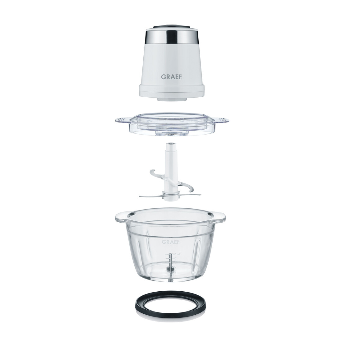 Met de foodprocessor van Graef rasp, snijd, schaaf en hak je verschillende ingrediënten met gemak. De compacte witte foodsprocessor is geschikt voor zowel harde als zachte producten. Kruiden, fruit, groenten en zelfs noten zijn met de krachtige 500 watt motor van de foodprocessor geen probleem. De vier snijbladen zijn vlijmscherp en gemaakt van roestvrij staal. Dit zorgt voor een gelijkmatig resultaat.