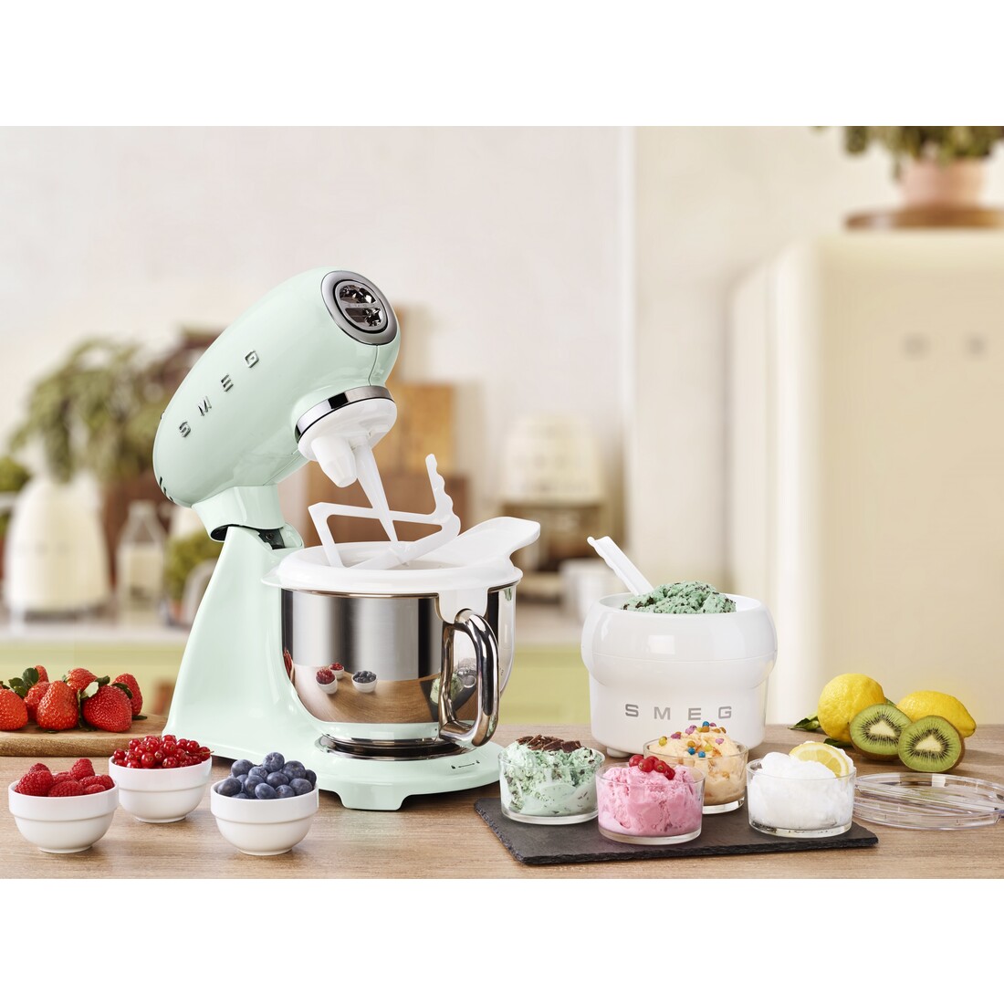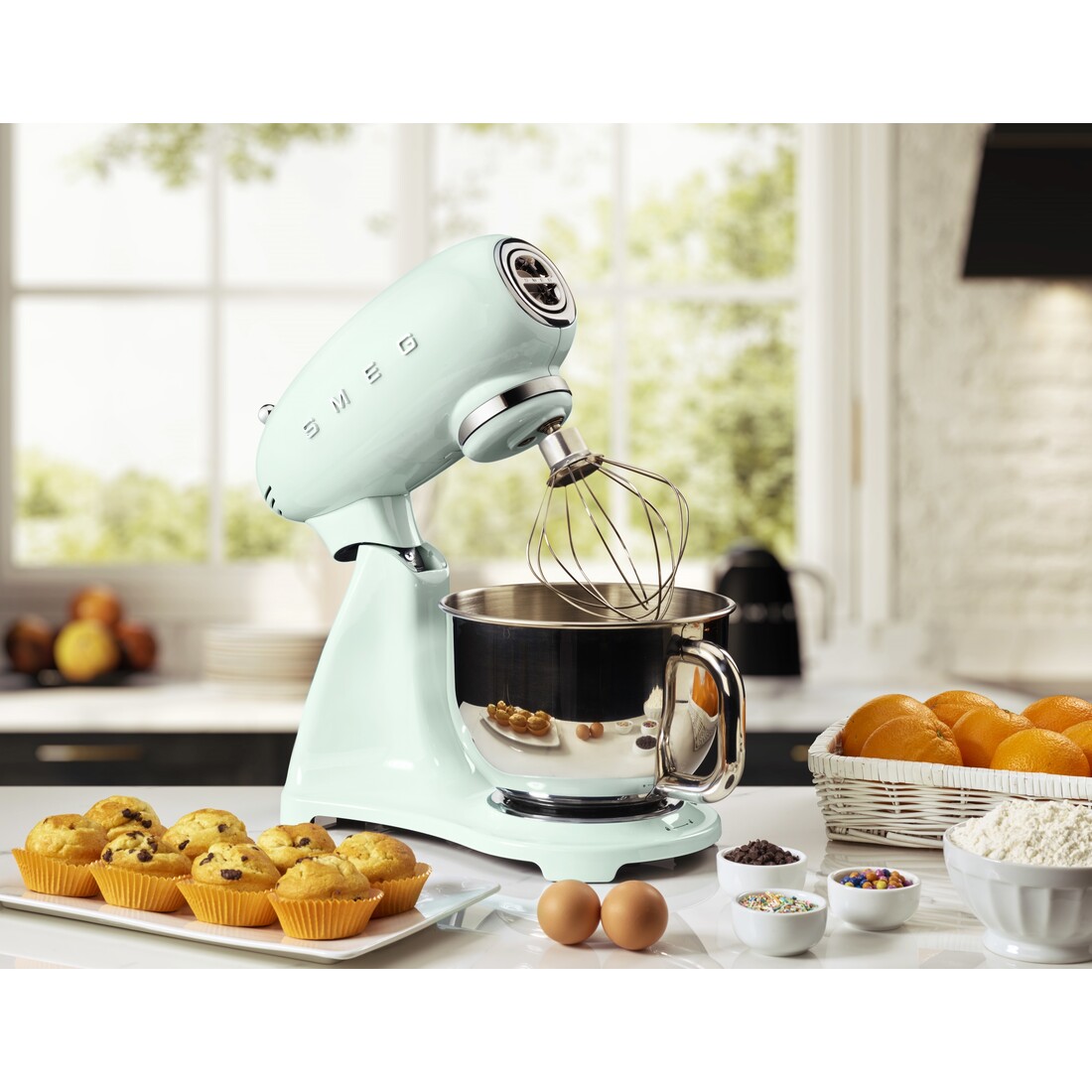 Deze stijlvolle keukenmachine past in elke keuken. De SMEG SMF03 is een krachtige mixer met een 800 watt motor. De mixer wordt geleverd inclusief een platte klopper, deeghaak, garde en schenkschild voor de mengkom. Hierdoor kan je erg veel recepten maken met behulp van deze machine.