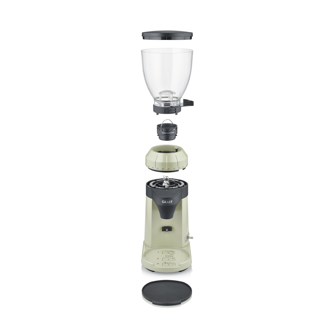 Met de Graef CM8007 koffiemolen haal je een krachtige en veelzijdige koffiemolen in huis die perfect is voor de echte koffieliefhebber. De molen beschikt over veertig instelbare maalstanden, van grof tot zeer fijn, zodat je altijd de juiste maling hebt voor jouw favoriete zetmethode. Dankzij het duurzame kegelvormige maalwerk en de langzaam draaiende motor blijven de aroma's van de koffiebonen behouden en voorkom je oververhitting. De ingebouwde ledverlichting bij de koffieuitloop zorgt voor goed zicht tijdens het malen. Je plaatst de piston eenvoudig in de houder en drukt hem tegen de machine aan, waarna de koffie direct in de piston valt.De CM8007 is voorzien van twee bonenreservoirs: een grote voor ongeveer 350 gram koffiebonen en een kleinere voor een enkele dagelijkse dosis van 75 gram. Zo maal je altijd precies genoeg voor verse koffie en voorkom je smaakverlies. De verbeterde antistatische eigenschappen zorgen ervoor dat de gemalen koffie netjes op zijn plaats blijft en je werkblad schoon blijft. De molen wordt compleet geleverd met een grote en een kleine pistonhouder, een bewaardoos met deksel voor gemalen koffie, een reinigingsborstel en een vultrechter. Dankzij de automatische maalfunctie voor pistons en de uitgebreide instelmogelijkheden is dit een ideale koffiemolen voor wie houdt van controle, gemak en kwaliteit.