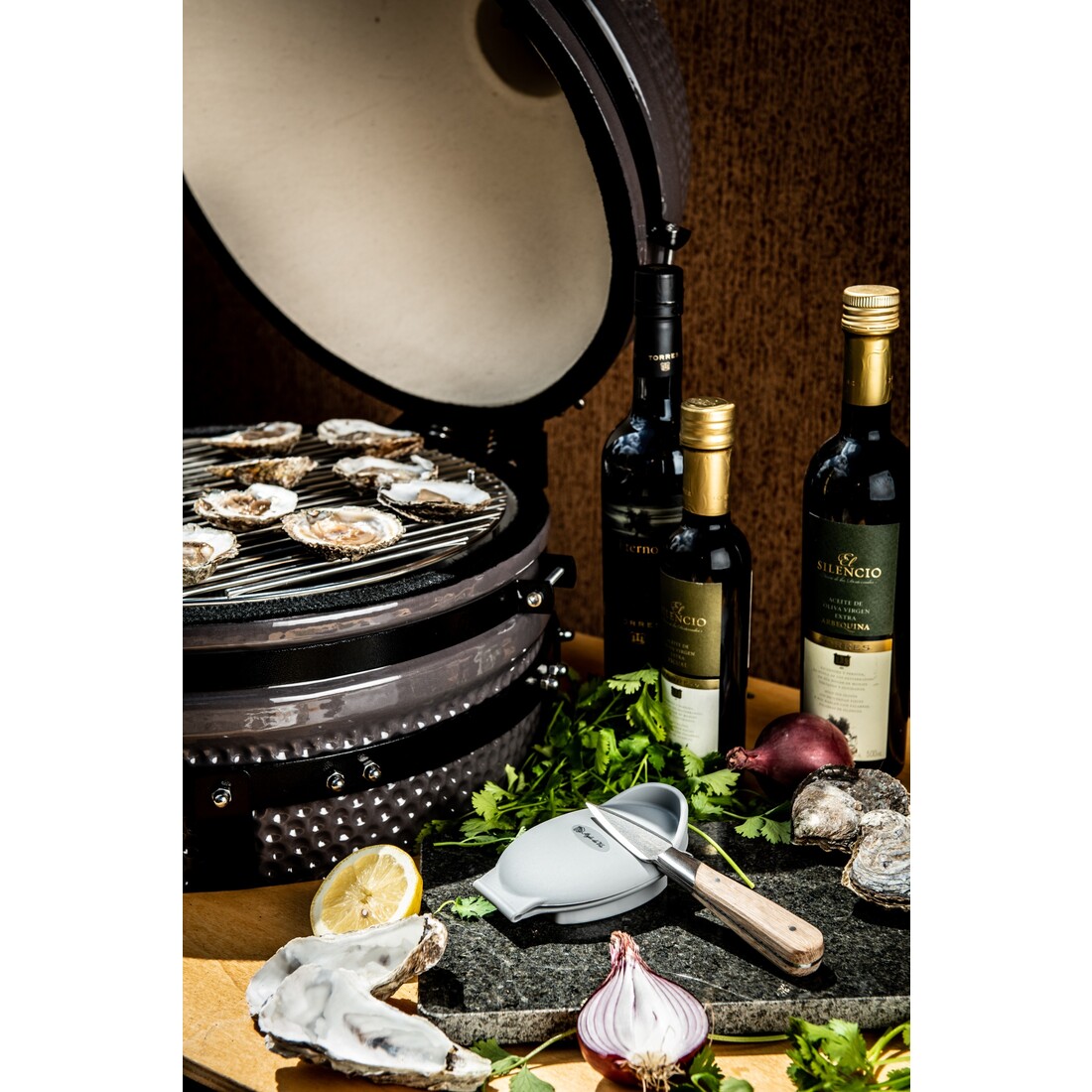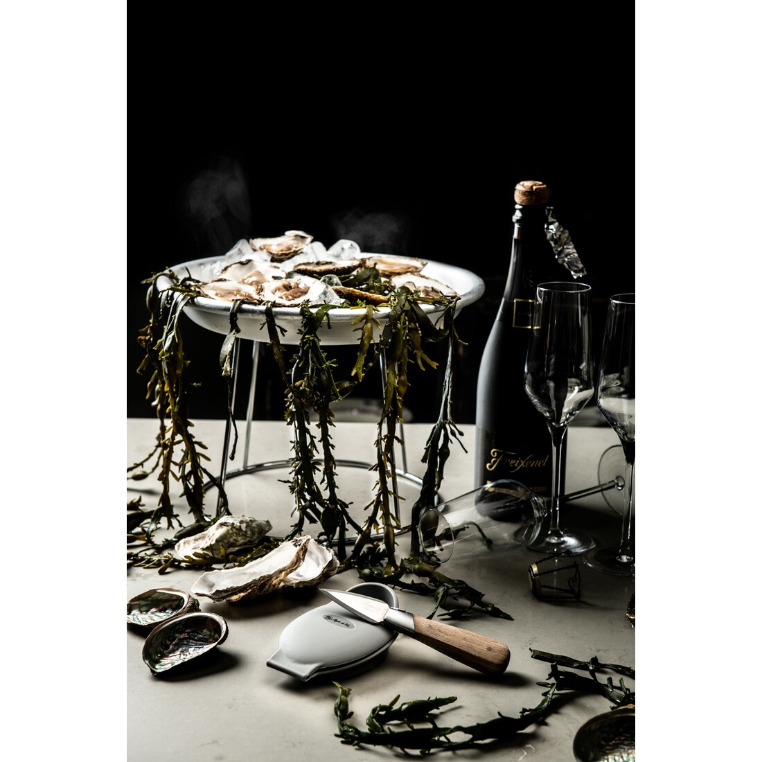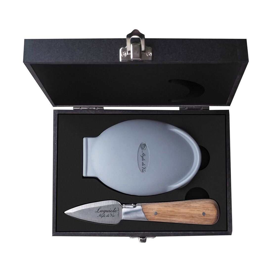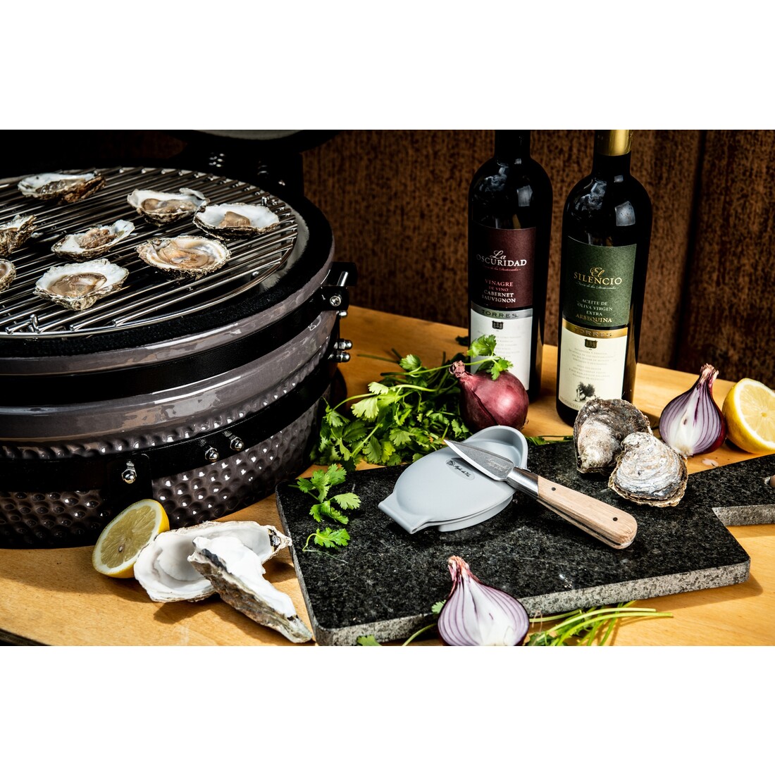 Dit Laguiole Style de Vie oestermes is het perfecte cadeau voor elke liefhebber van verse oesters. Het mes wordt geleverd met een grijze siliconen oesterhouder om de oester makkelijk en veilig te openen. Het oestermes is gemaakt van roestvrij staal met een handgreep van eikenhout. Wordt geleverd in houten giftbox.