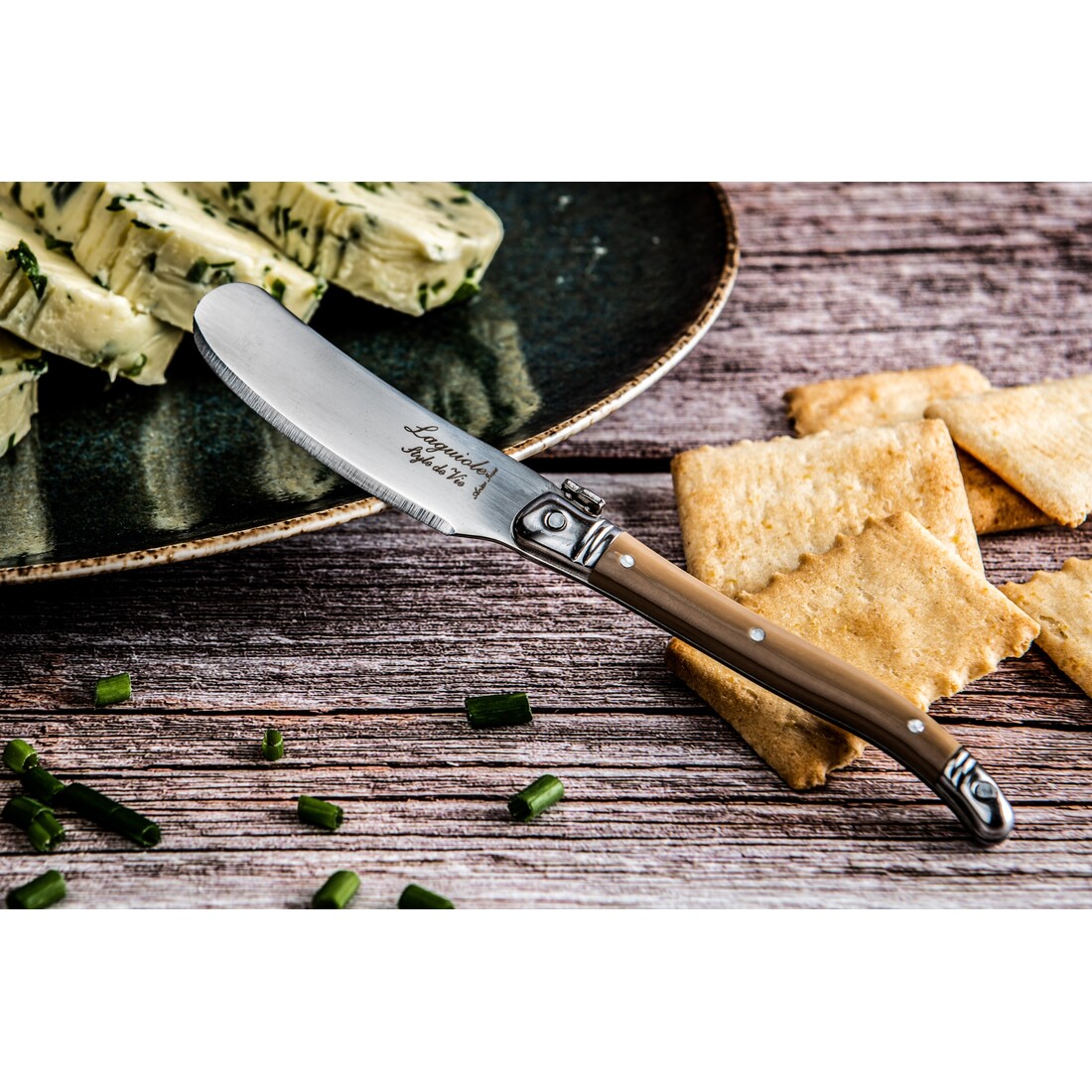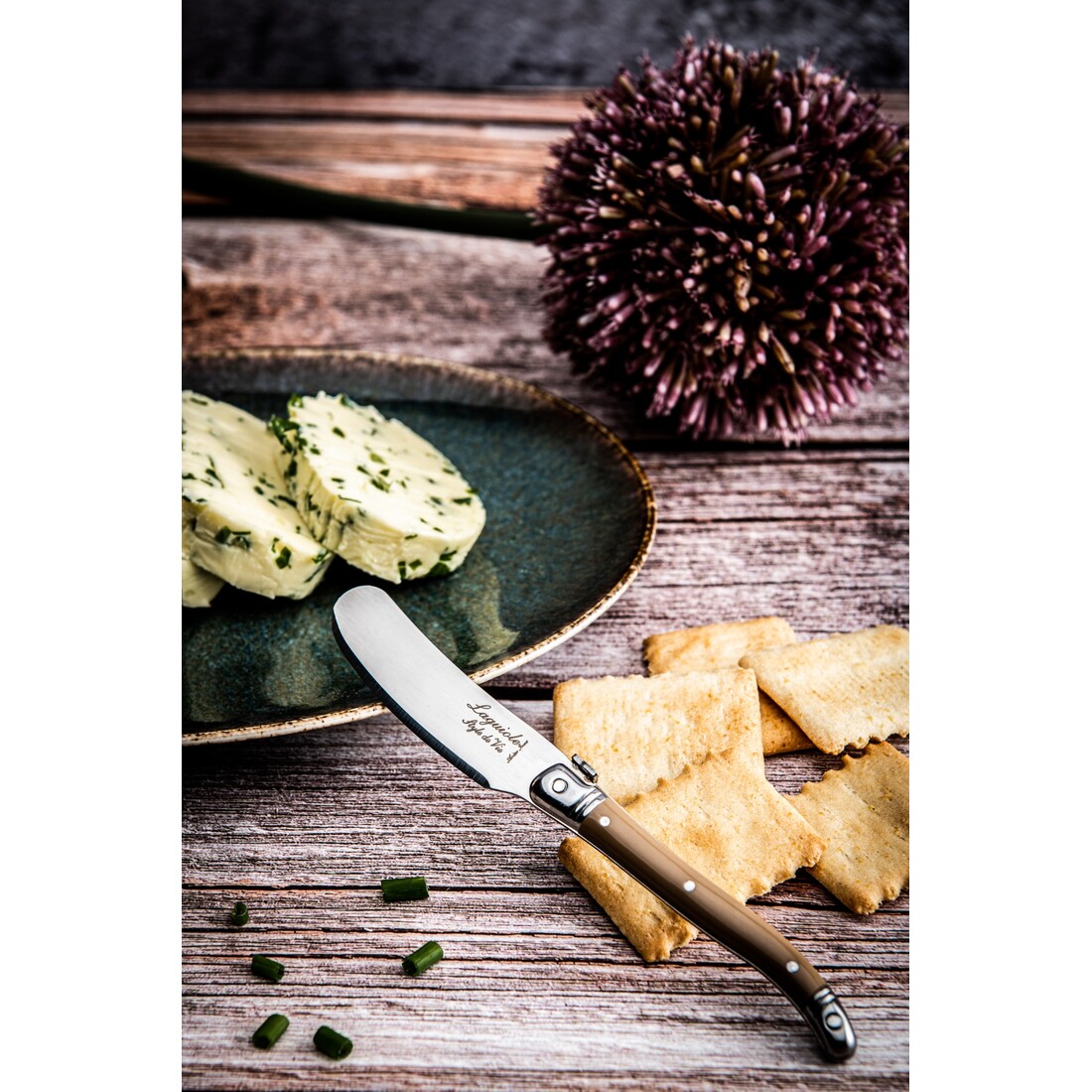 Deze set van 4 botermesjes uit de Laguiole Style de Premium Line hebben een totale lengte van 16cm. De messen zijn voorzien elk voorzien van een eigen kleur handvat met het ingelegde bijtje van Laguiole Style de Vie. Vaatwasmachine bestendig, hoewel met de hand reinigen wordt aanbevolen. Wordt geleverd in een houten tray.