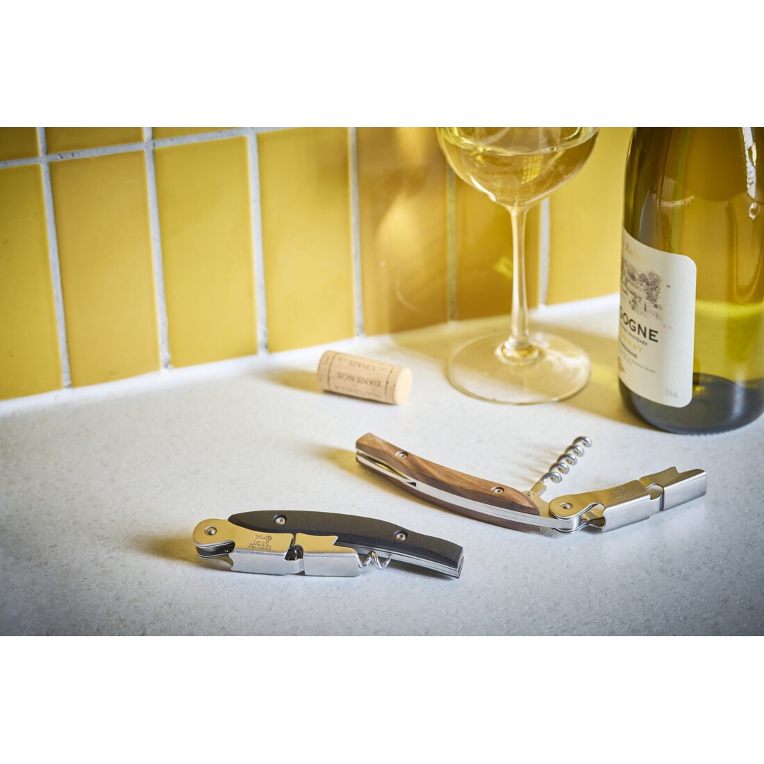 - Ingebouwde foliesnijder en flesopener