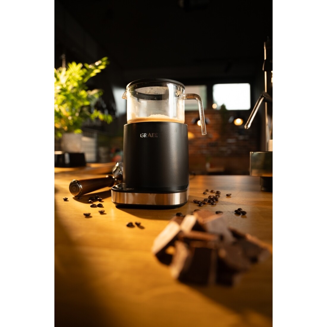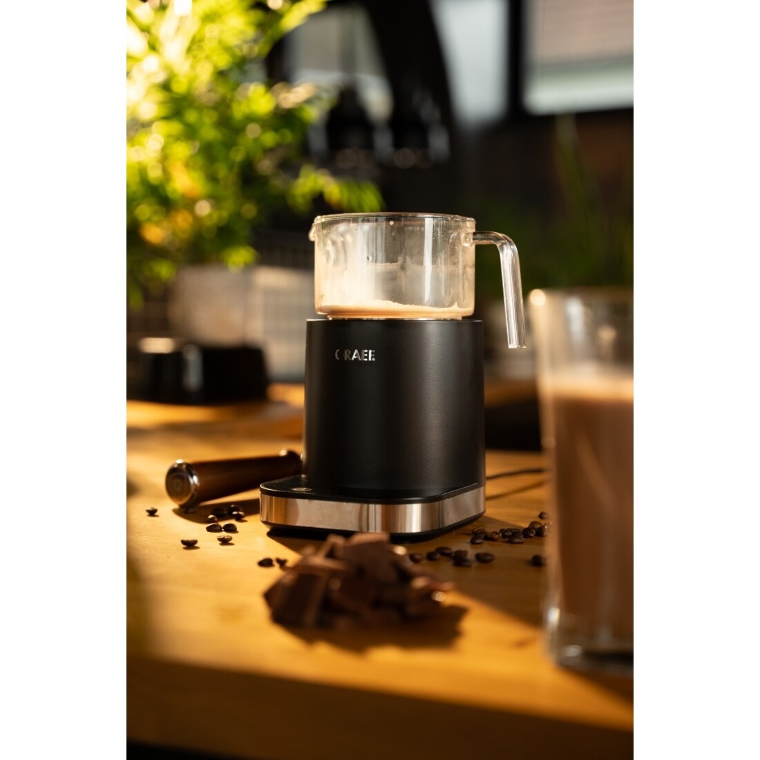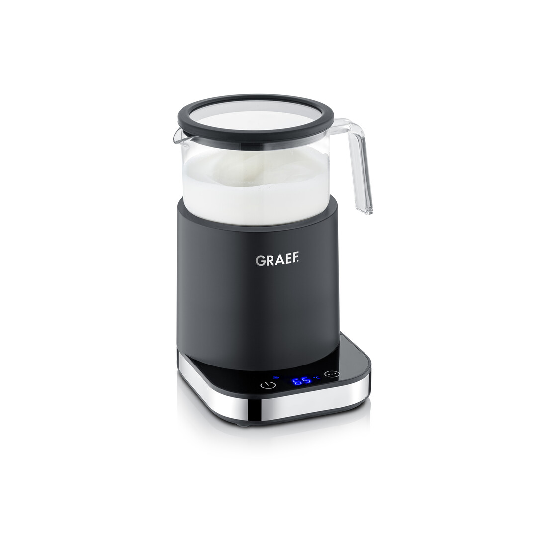 Met de Graef melkopschuimer MS902 bereid jij moeiteloos melkschuim in baristakwaliteit, gewoon bij jou thuis. Deze elegante melkopschuimer is voorzien van een glazen kan en een modern touchdisplay waarmee je de temperatuur nauwkeurig instelt in stappen van vijf graden. Afhankelijk van je voorkeur kies je uit zes automatische programma’s. Voor liefhebbers van cappuccino en latte macchiato is er volumineus melkschuim, zowel koud als warm. Wil je juist een zijdezachte structuur, dan zijn er de programma’s voor romig melkschuim, eveneens in koude en warme varianten. Daarnaast kun je kiezen voor het verwarmen van melk of het bereiden van warme chocolademelk, waarbij stukjes chocolade direct in de melk kunnen smelten voor een volle smaakbeleving.De melkopschuimer biedt volledige controle over de temperatuur. Voor melkschuim stel je de temperatuur in tussen 45 en 65 graden Celsius, terwijl warme melk of chocolademelk zelfs tot 85 graden kan worden verwarmd. Dankzij de glazen kan zie je precies hoe het opschuimen verloopt. Je schuimt tussen 100 en 200 milliliter melk op, wat resulteert in tot wel 400 milliliter melkschuim. Na gebruik mag de uitneembare glazen kan gewoon in de vaatwasser. Met een vermogen van 500 watt en een hoogwaardige afwerking in het kenmerkende Graef design is deze melkopschuimer een stijlvolle en praktische aanvulling op jouw keuken.