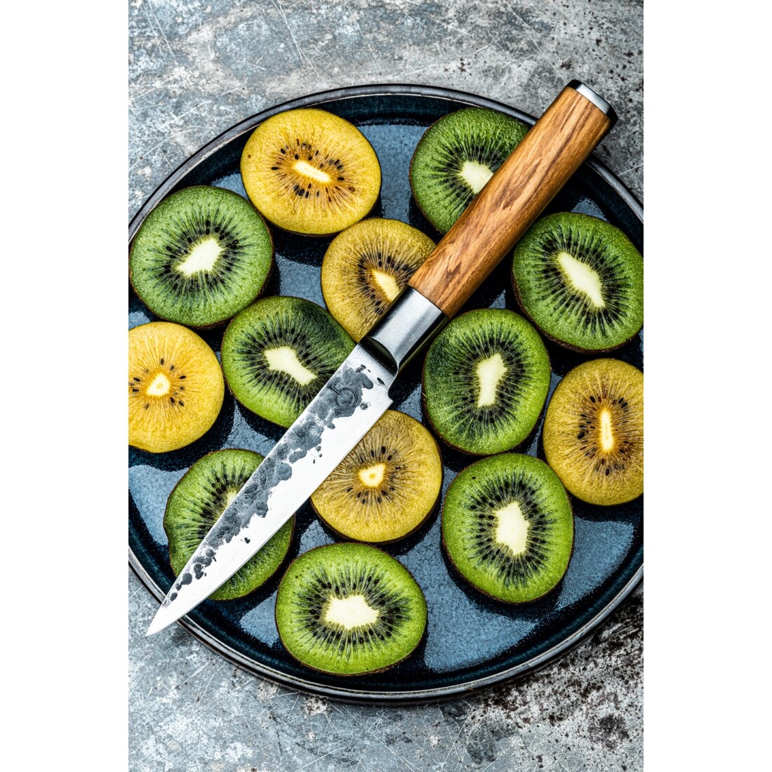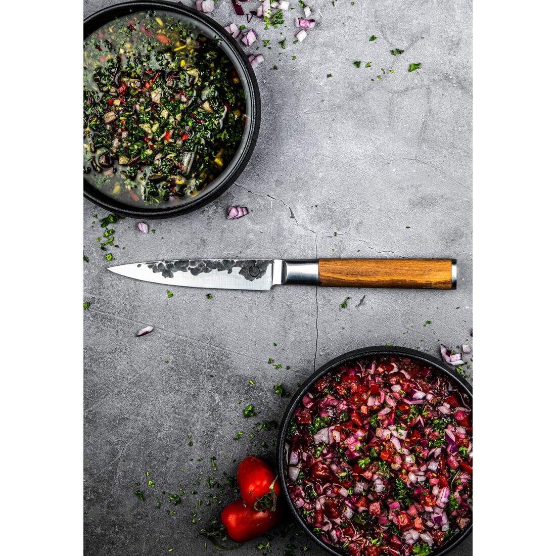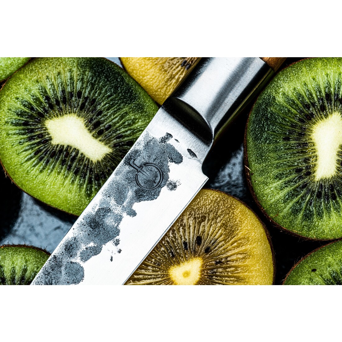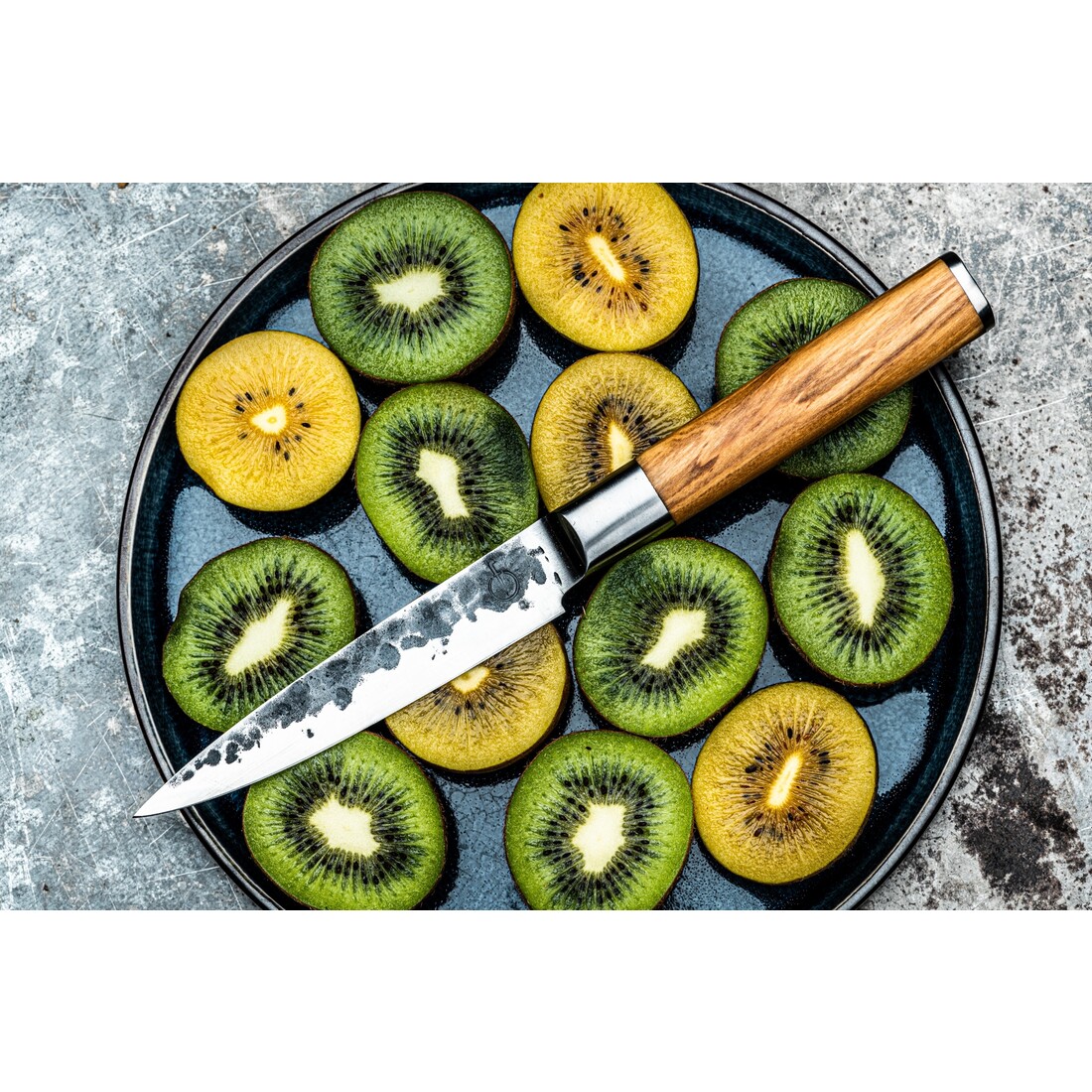 De nieuwe Olive Forged messen zijn voorzien van een prachtige olijfhouten handgreep. De handgreep is extra opvallend door de doorlopende krop en de toegevoegde pommel op de achterzijde. De pommel is bovendien afgewerkt in dezelfde stijl als het lemmet, waardoor alles één geheel wordt.