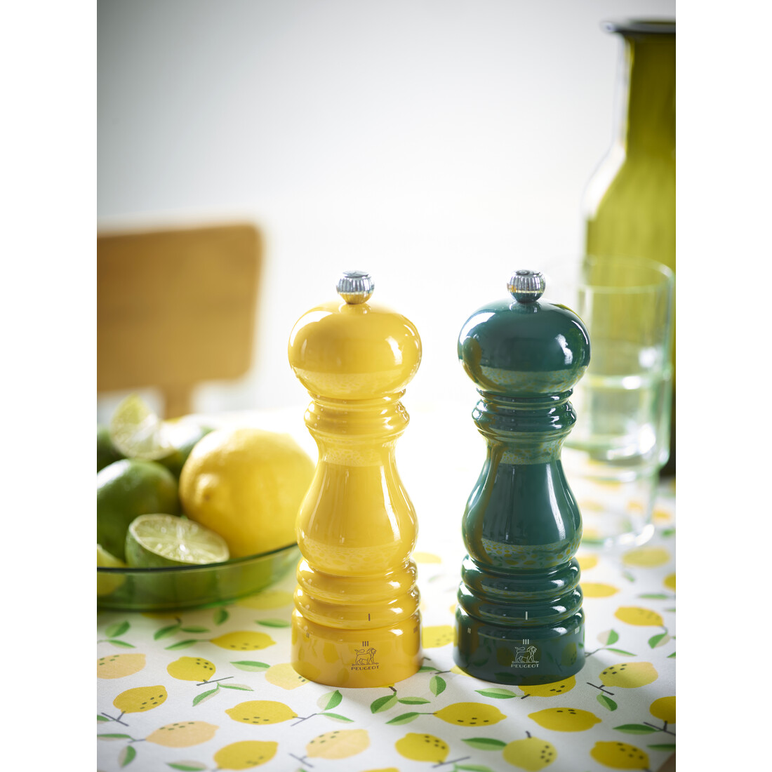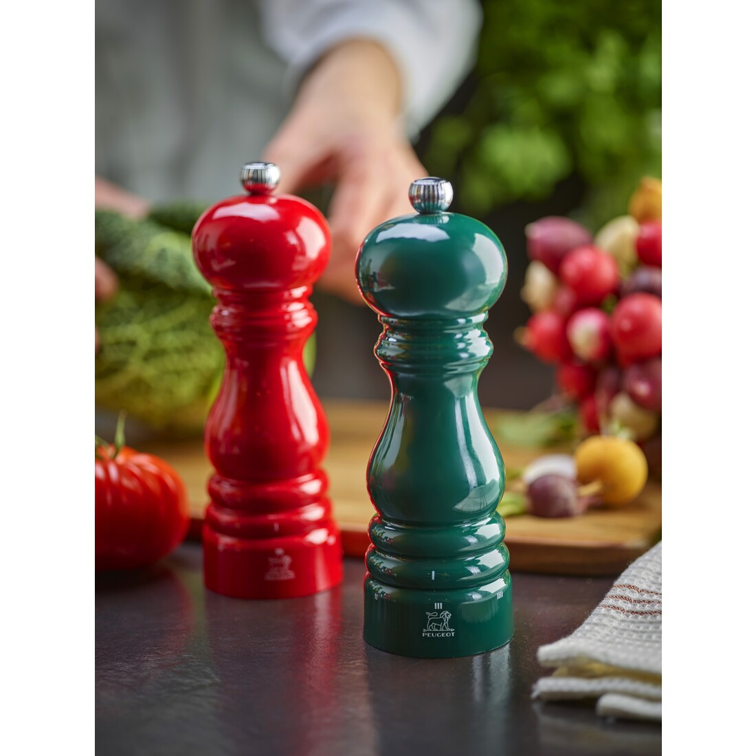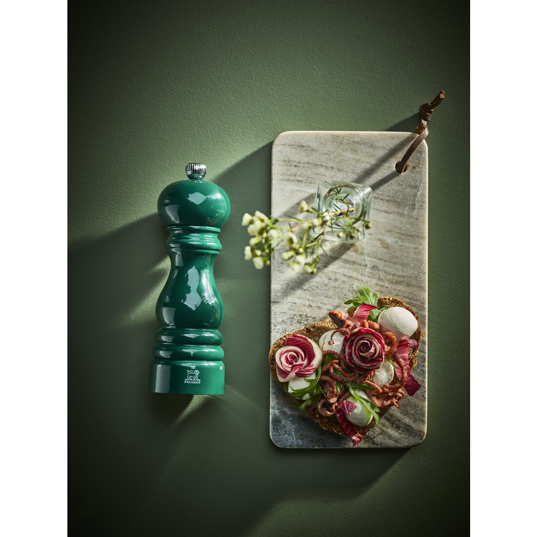 De klassieke Peugeot zoutmolen, maar dan in moderne en vernieuwde kleuren. Dat is de Peugeot ParisRama serie. Deze zoutmolen is 18 cm hoog en is gemaakt van PEFC hout, in de kleur bosgroen. De unieke uitstraling van deze molen maakt van iedere tafel een echt feestje. Maak gerechten op smaak en stel de maalgraad gemakkelijk in, met de vernieuwde u'Select functie. Je maalt iedere zoutkorrel zo fijn of grof als jij wilt. Reinig na enige tijd de zoutmolen aan de binnenkant met een vochtige doek om de levensduur van deze stijlvolle molen te onderhouden. Combineer deze klassieke zoutmolen met een bijpassende Peugeot pepermolen!