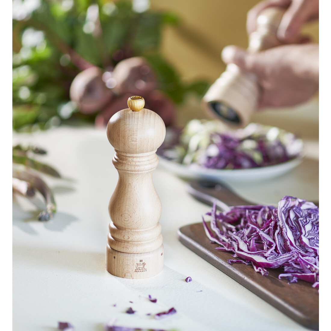 De Peugeot Paris u'Select zoutmolen in een chique naturel kleur is perfect voor iedere (hobby)kok. Met het u'Select-systeem stel je de maalgraad gemakkelijk en professioneel in, waardoor je altijd de perfecte smaak kiest voor jouw gerecht. Je stelt dit in door onderaan de molen te draaien. De slanke houten vorm ligt prettig in de hand en is daarom fijn in gebruik. De zoutmolen heeft een afmeting van 18 cm en is stijlvol afgewerkt met een goudkleurige knop met het kenmerkende logo van Peugeot daarop. Het is een veelzijdige molen voor gebruik in de keuken en op tafel.