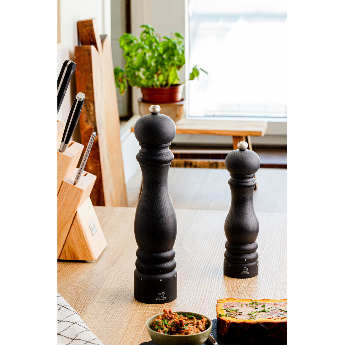 De Peugeot Paris u'Select zoutmolen in een chique grafietkleur is perfect voor iedere (hobby)kok. Met het u'Select-systeem stel je de maalgraad gemakkelijk en professioneel in, waardoor je altijd de perfecte smaak kiest voor jouw gerecht. Je stelt dit in door onderaan de molen te draaien. De slanke houten vorm ligt prettig in de hand en is daarom fijn in gebruik. De zoutmolen heeft een afmeting van 22 cm en is stijlvol afgewerkt met een goudkleurige knop met het kenmerkende logo van Peugeot daarop. Het is een veelzijdige molen voor gebruik in de keuken.