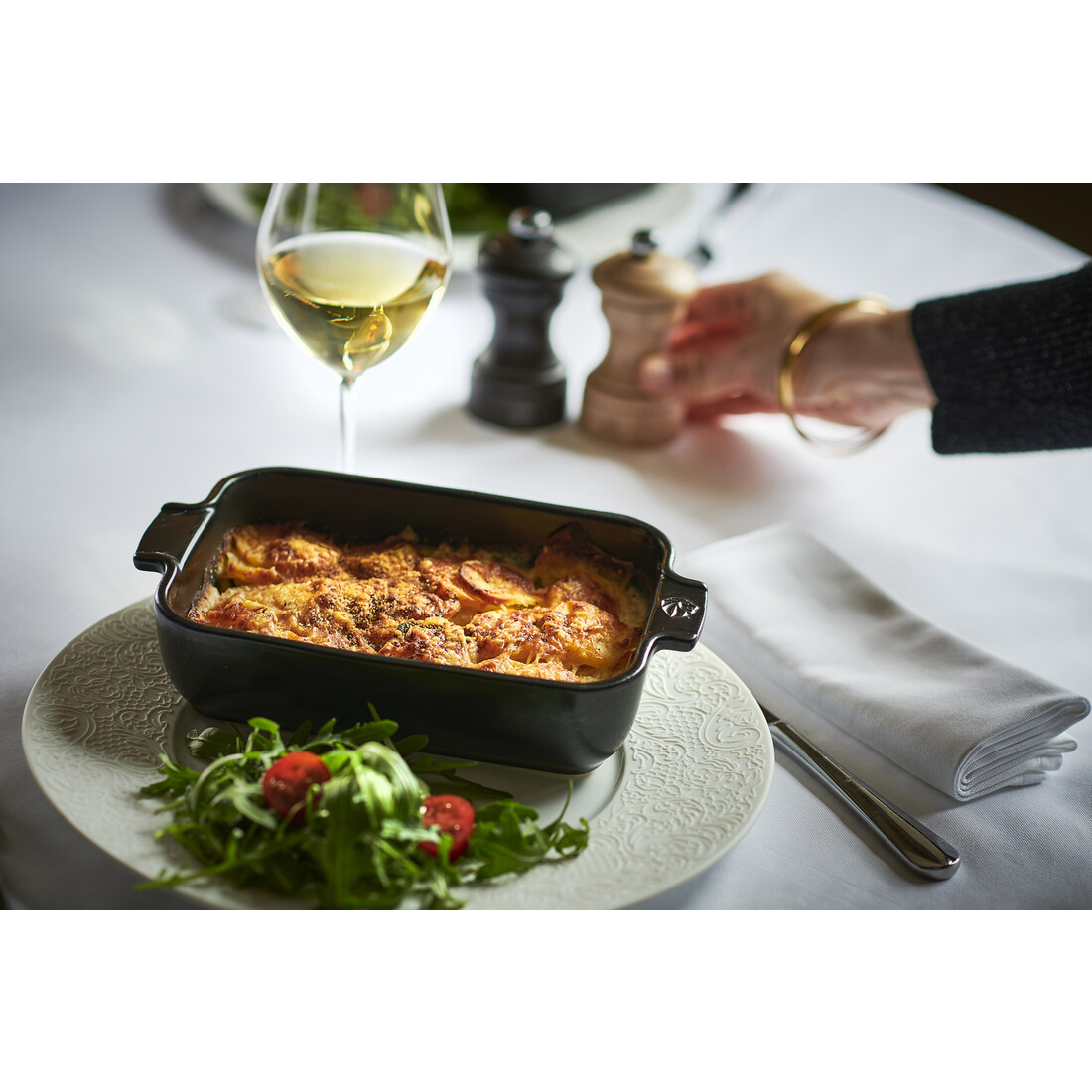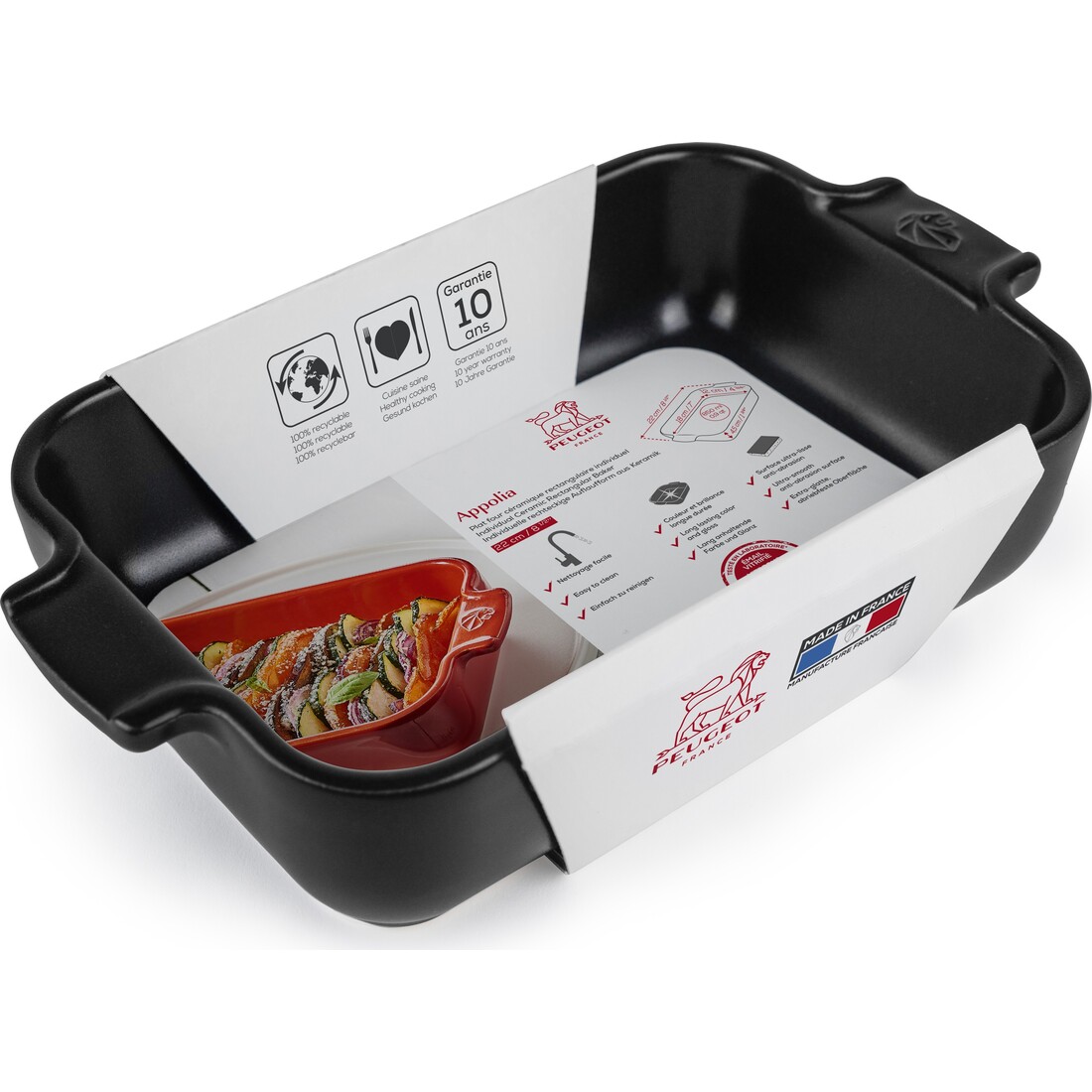 Nieuwe culinaire avonturen wachten met de keramische Appolia ovenschalen van Peugeot. Deze schalen, vervaardigd in Frankrijk, worden voortdurend verbeterd in kwaliteit. De keramische ovenschaal met emaille laag biedt een gelijkmatige bereiding voor ieder ovengerecht. Deze rechthoekige schaal van 22 cm is verkrijgbaar in klassieke en eigentijdse kleuren, waaronder deze stijlvolle satijnzwarte kleur.
