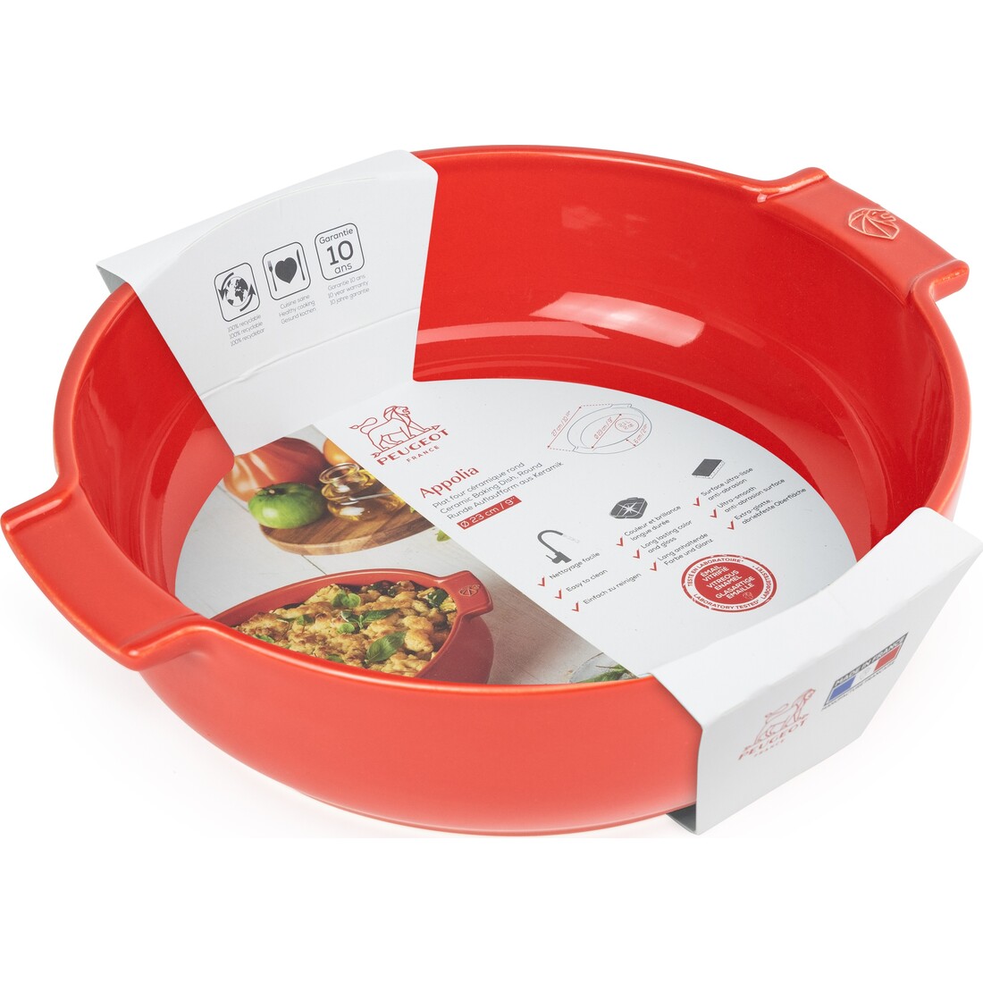 De Peugeot Appolia ovenschalen zijn duurzaam ontworpen. Deze stijlvolle ovenschaal heeft een binnendiameter van 23 cm en een inhoud van 2,1 liter. De diameter van handgreep tot handgreep is 27 cm. De ronde schaal wordt geleverd in de kleur rood. Geschikt voor de oven, magnetron, vriezer en vaatwasser.