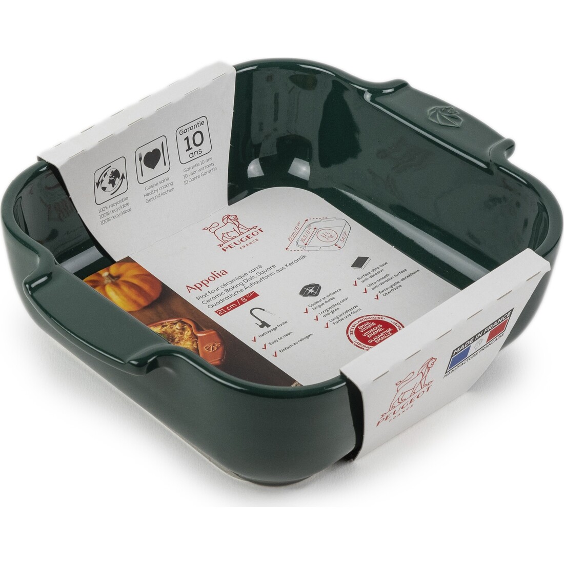 De Peugeot Appolia ovenschalen zijn duurzaam ontworpen. Deze stijlvolle ovenschaal heeft een binnendiameter van 16,3 cm en een inhoud van 1,1 liter. De diameter van handgreep tot handgreep is 21 cm. De vierkante schaal wordt geleverd in de kleur bosgroen. Geschikt voor de oven, magnetron, vriezer en vaatwasser.