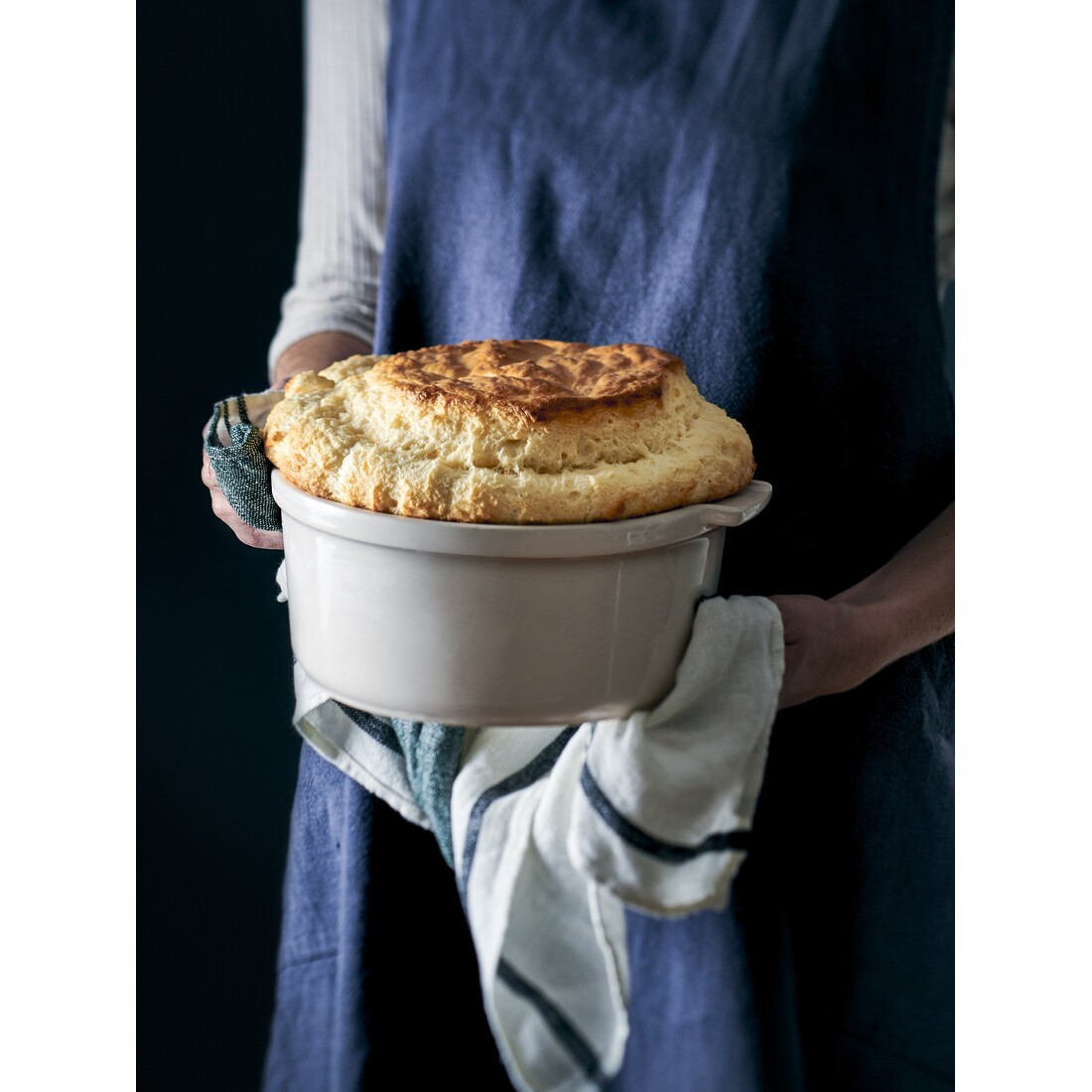 De Peugeot soufflévorm wordt gemaakt van keramiek, wat voedsel tot wel 30 minuten na het bakken en serveren op temperatuur houdt. Het elegante ontwerp in de kleur ecru past perfect op elke tafel, en de afgeronde hoeken maken het reinigen van de vorm een fluitje van een cent. De Appolia soufflévorm heeft een diameter van 22 cm en is geschikt voor de oven, magnetron, vriezer en vaatwasser.