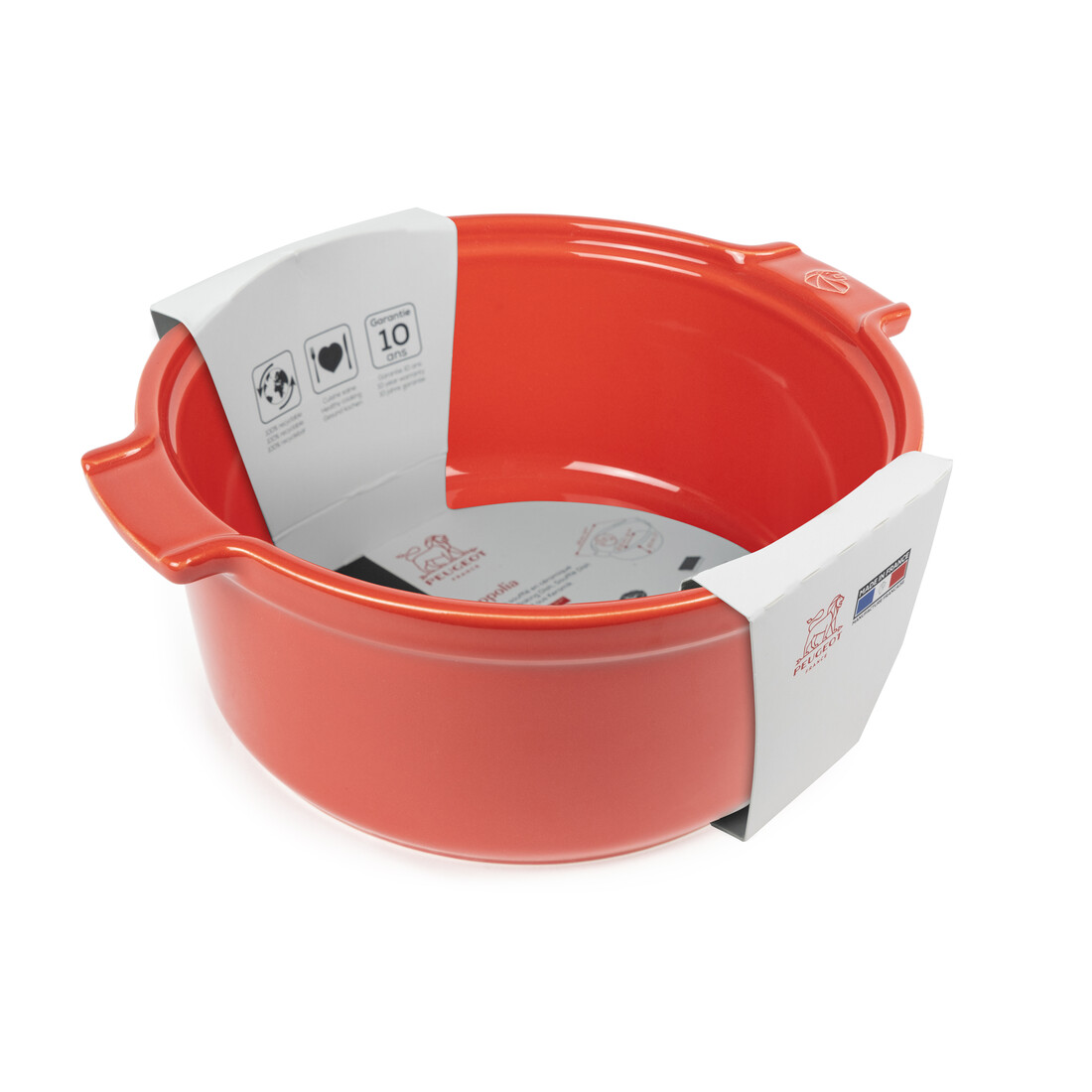 De Peugeot soufflévorm wordt gemaakt van keramiek, wat voedsel tot wel 30 minuten na het bakken en serveren op temperatuur houdt. Het elegante ontwerp in de kleur rood past perfect op elke tafel, en de afgeronde hoeken maken het reinigen van de vorm een fluitje van een cent. De Appolia soufflévorm heeft een diameter van 22 cm en is geschikt voor de oven, magnetron, vriezer en vaatwasser.