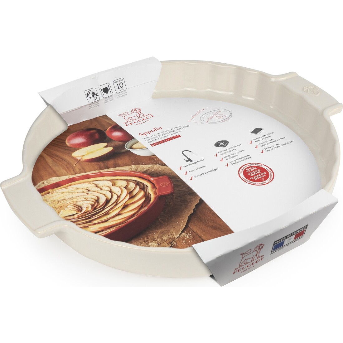 Nieuwe culinaire avonturen wachten met de keramische Appolia ovenschalen van Peugeot. Deze schalen, vervaardigd in Frankrijk, worden voortdurend verbeterd in kwaliteit. De keramische taartvorm met emaille laag biedt een gelijkmatige bereiding voor iedere zoete of hartige taart. Deze ronde ovenschaal van 30 cm is verkrijgbaar in klassieke en eigentijdse kleuren, waaronder de moderne kleur ecru.