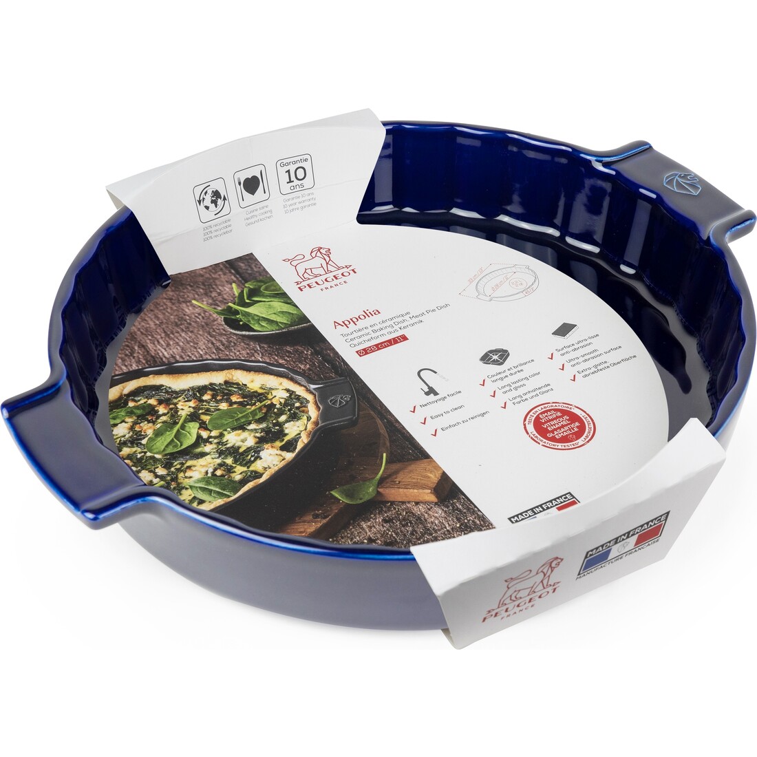 Nieuwe culinaire avonturen wachten met de keramische Appolia ovenschalen van Peugeot. Deze schalen, vervaardigd in Frankrijk, worden voortdurend verbeterd in kwaliteit. De keramische taartvorm met emaille laag biedt een gelijkmatige bereiding voor iedere zoete of hartige taart. Deze ronde ovenschaal van 28 cm is verkrijgbaar in klassieke en eigentijdse kleuren, waaronder de prachtige blauwe kleur.