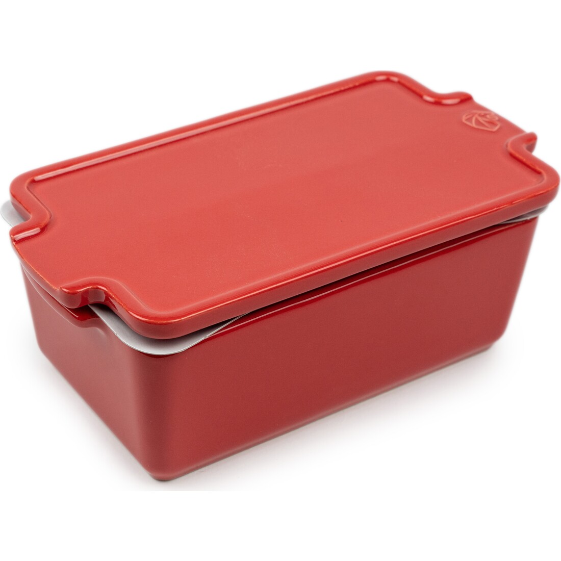 De terrine heeft een afmeting van 200 x 110 x 75 mm, inclusief handgrepen. Dit betekent een inhoud van 0,65 liter. Dit stijlvolle en culinaire item heeft een moderne rode kleur en kleed iedere tafelsetting extra aan. Is jouw gerecht klaar? Vanwege de gladde emaille laag zorgt ervoor dat je het gerecht gemakkelijk uit de vorm haalt en daarnaast de vorm weer eenvoudig schoonmaakt. Win-win dus!