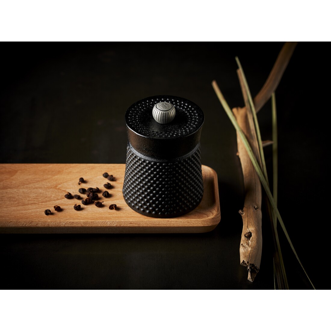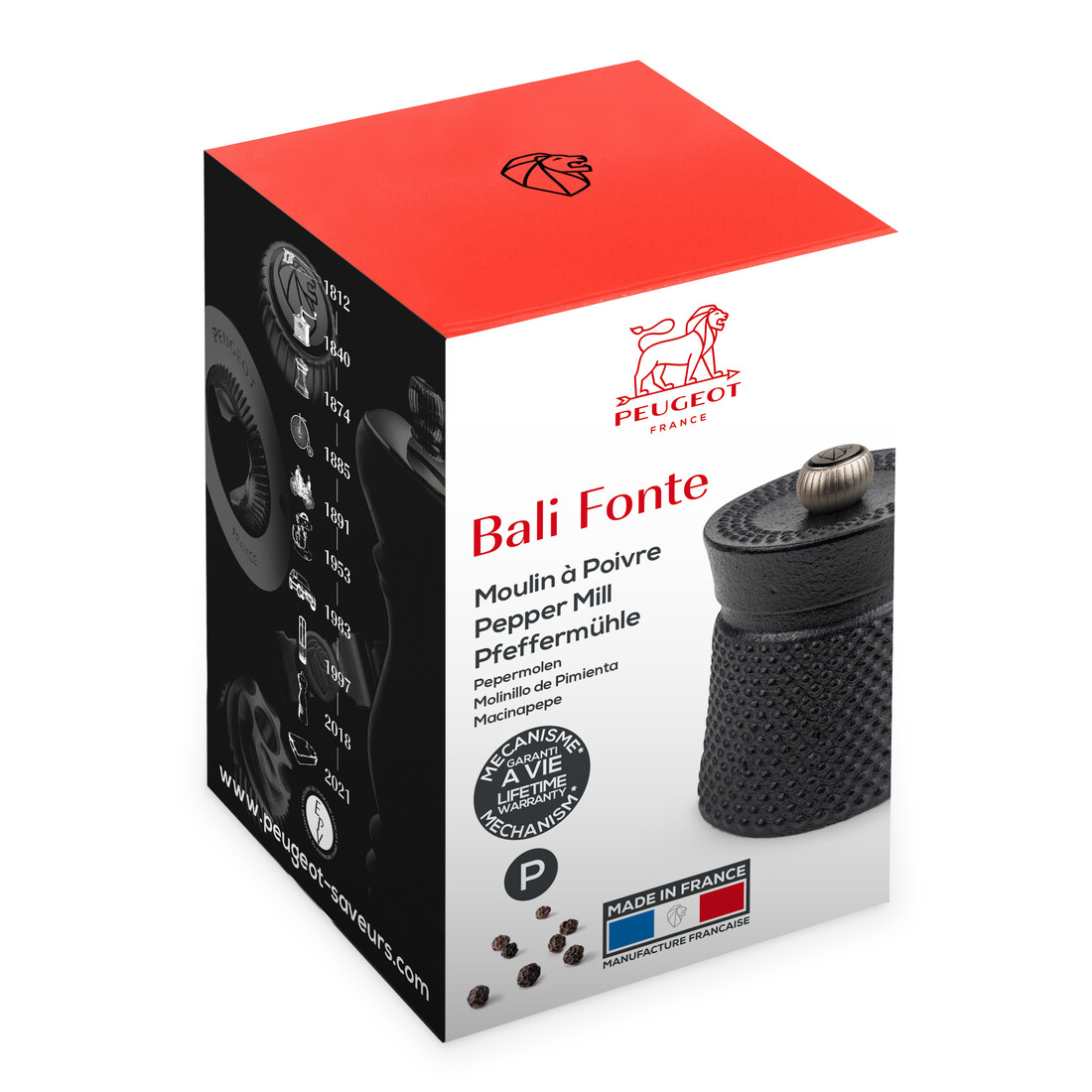 De Peugeot Bali manuele pepermolen is een compacte smaakmaker in de keuken. De serie brengt een eerbetoon aan één van de belangrijkste peperculturen te wereld: Indonesië. Pepermolen Bali Fonte heeft een afmeting van 8 cm en is gemaakt van zwart gietijzer, met zilverkleurige knop aan de bovenzijde.