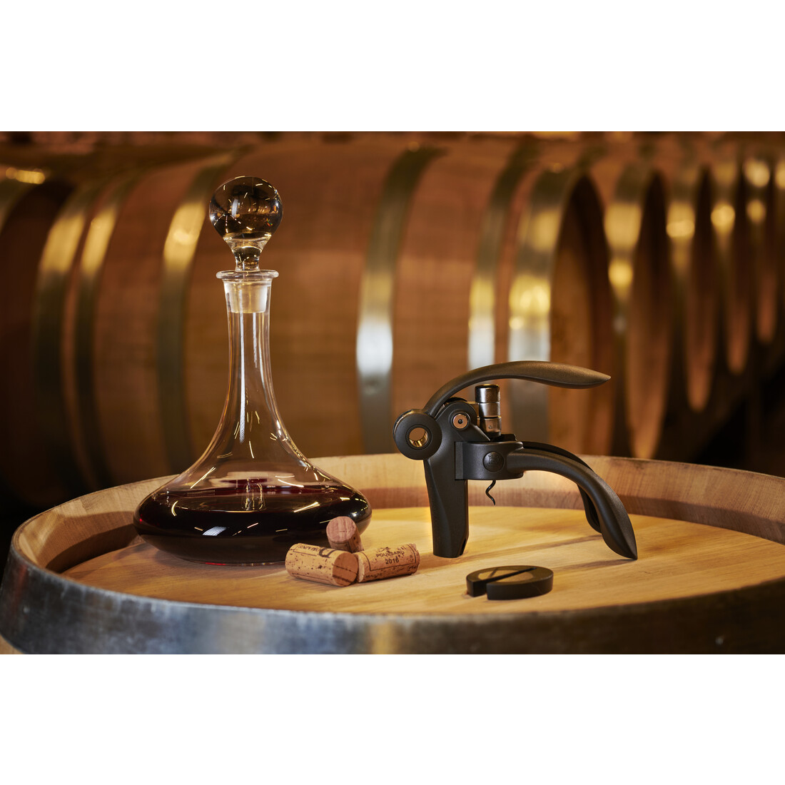Zonder moeite je fles wijn ontkurken doe je met de Peugeot Baltaz Dark kurkentrekker. De zwarte kurkentrekker werkt met een hefboommechanisme waardoor je zonder veel kracht en met één simpele beweging je fles kan openen. De grijpers aan de opener houden de fles op zijn plek als je de kurk verwijderd. Met de meegeleverde capsulesnijder snijd je het folie voor het openen gemakkelijk open. Kurkentrekker Baltaz is gemaakt van kunststof en de spiraal van gehard staal. Dit mooie instrument past op nagenoeg elke flessenhals. Het elegante ontwerp zorgt ervoor dat de opener in iedere keuken goed staat. Het ontwerp is daarnaast ergonomisch waardoor je niet alleen makkelijk maar ook op een prettige manier je flessen kan openen. Kortom, een onmisbare tool als echte wijnliefhebber!Specificaties