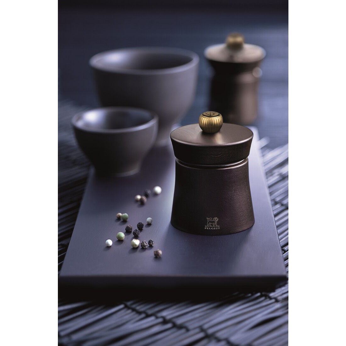 De Peugeot Bali manuele pepermolen is een compacte smaakmaker in de keuken. De serie brengt een eerbetoon aan één van de belangrijkste peperculturen te wereld: Indonesië. Pepermolen Bali Baya heeft een afmeting van 8 cm en is gemaakt van chocolade kleurig beukenhout, met goudkleurige knop aan de bovenzijde.