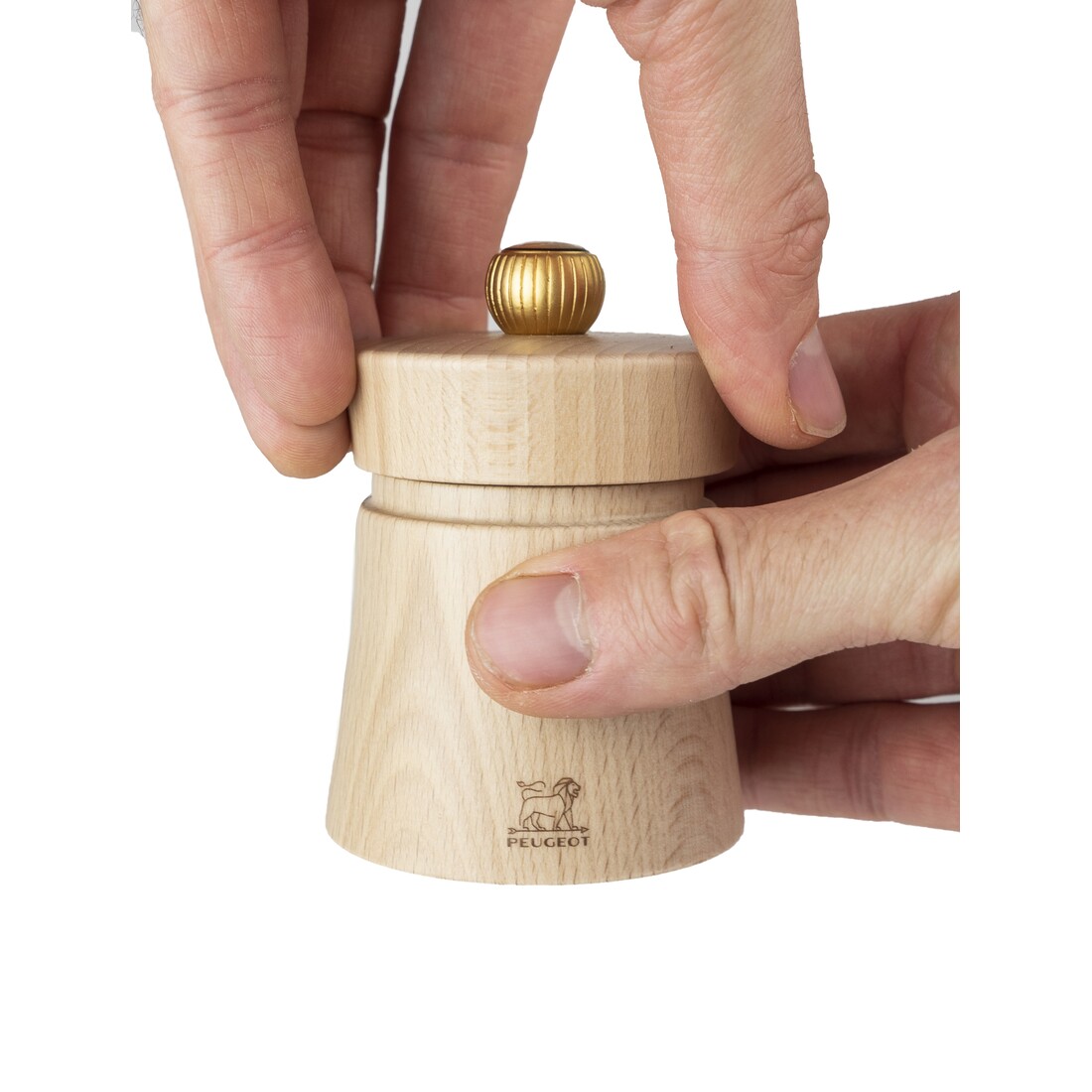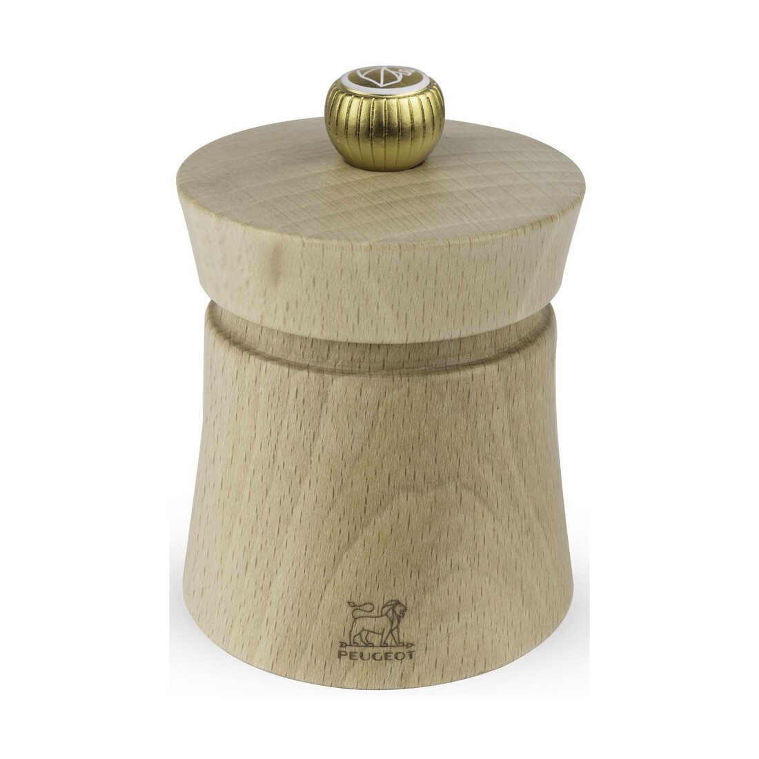 De Peugeot Bali manuele zoutmolen is een compacte smaakmaker in de keuken. De serie brengt een eerbetoon aan één van de belangrijkste peperculturen te wereld: Indonesië. Zoutmolen Bali Baya heeft een afmeting van 8 cm en is gemaakt van naturel beukenhout, met goudkleurige knop aan de bovenzijde.