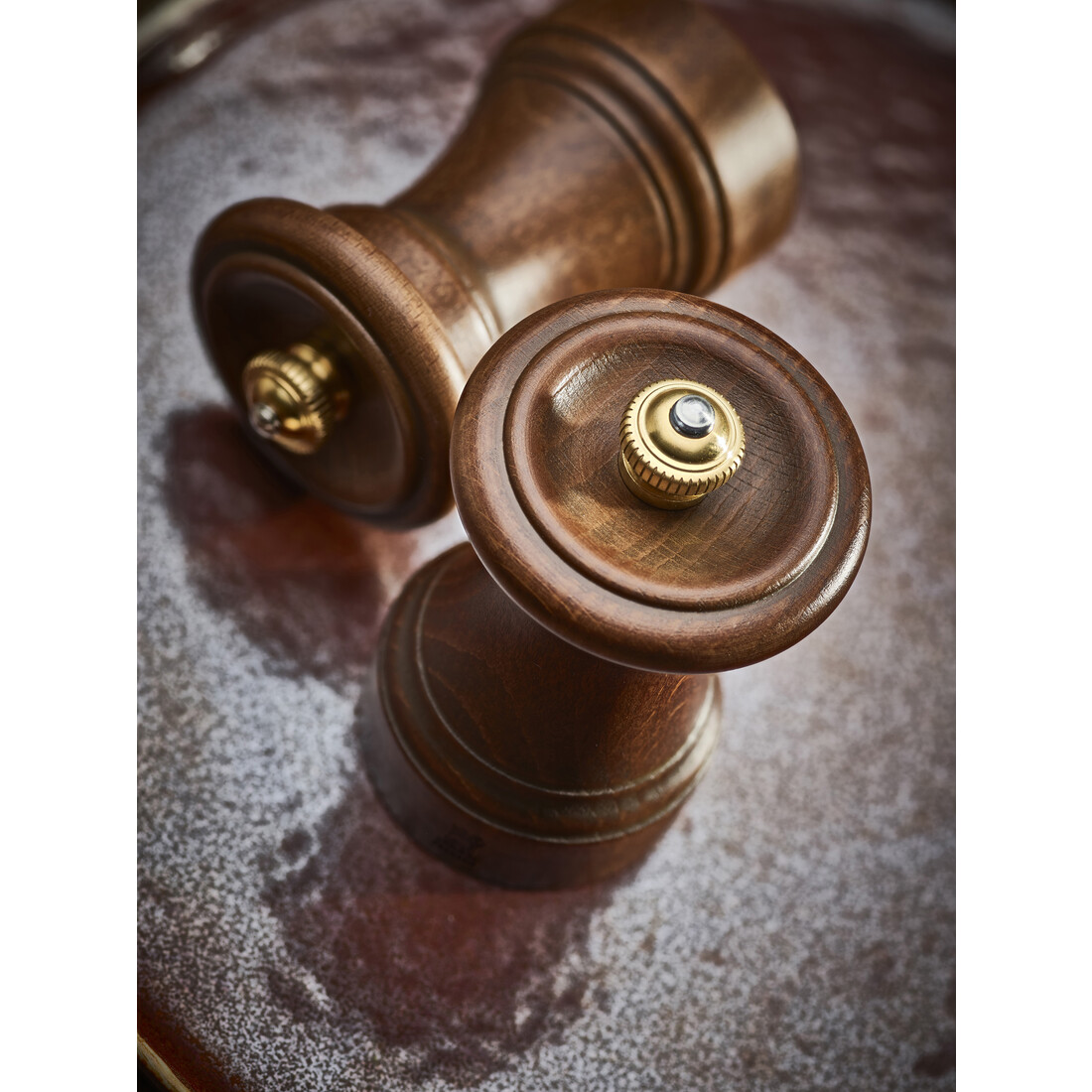 De molen is gemaakt van gepatineerd beukenhout en heeft een sierknop die accent legt op de holle gebogen vorm van de kop. Verpakt in een stijlvolle geschenkdoos, is deze zoutmolen niet alleen een prachtig klassiek keukenitem, maar ook een erg leuk cadeau.