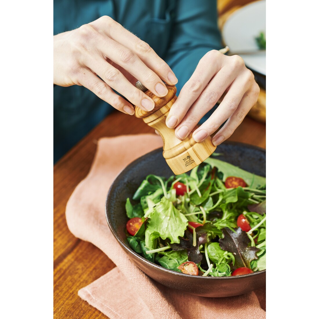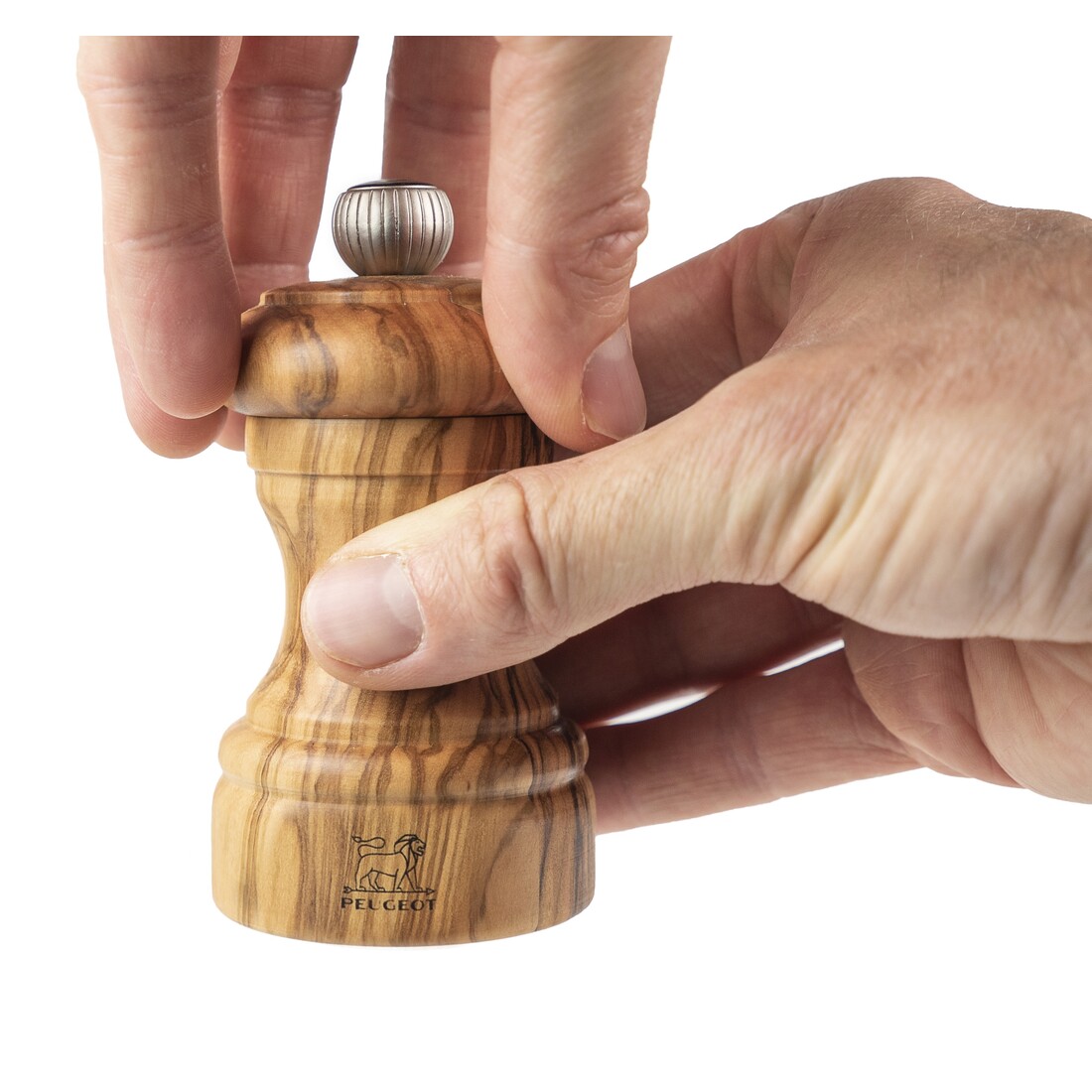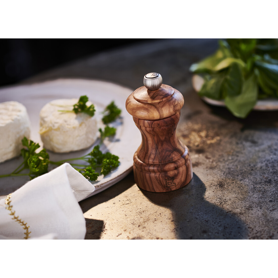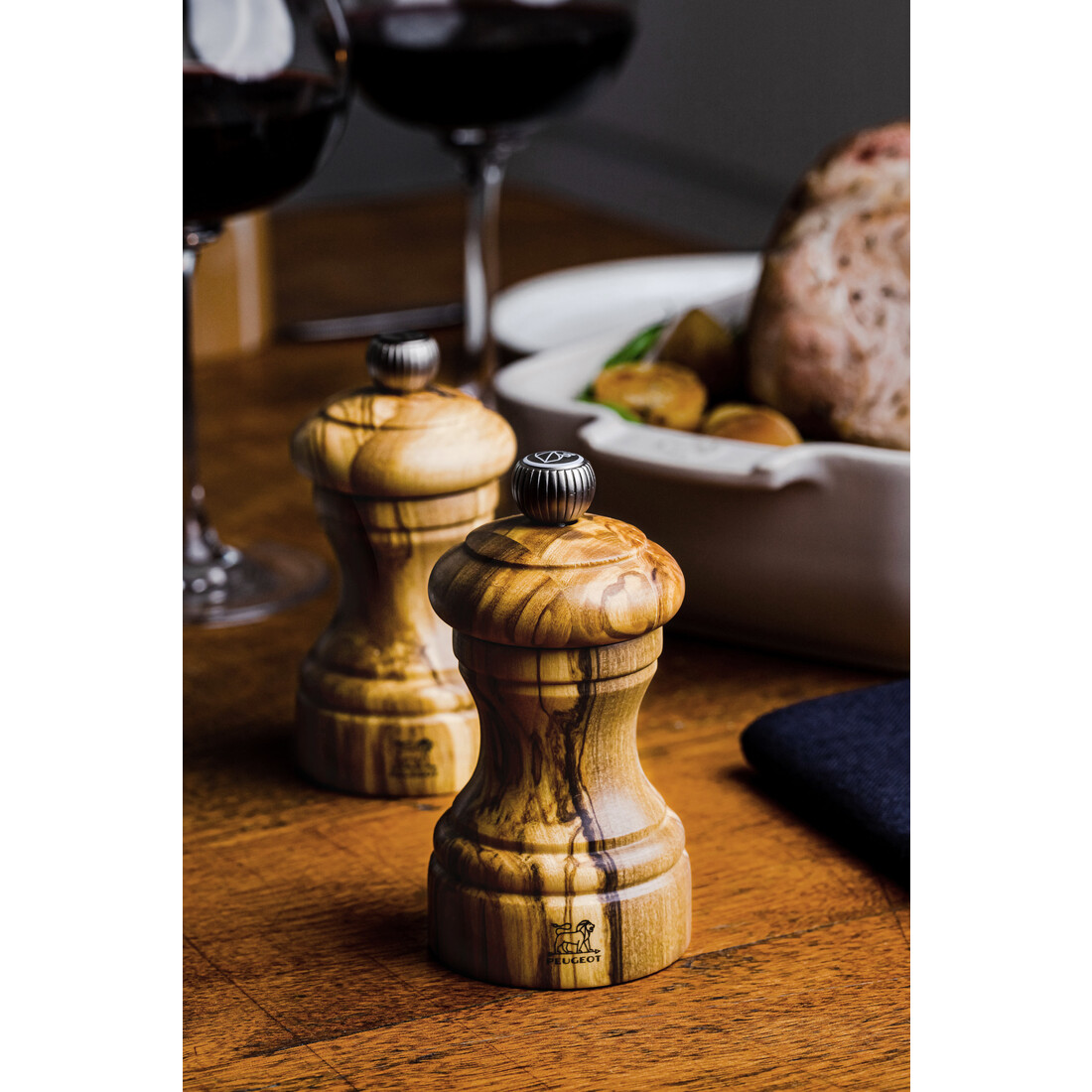 De peper- en zoutmolens uit de Bistro serie van Peugeot zijn kwalitatieve molens met een klassiek design. De compacte pepermolen is 10 cm hoog en heeft een hout-look afwerking, vanwege de unieke olijfhouten houtnerven. Je stelt het klassieke maalwerk gemakkelijk met de hand in.