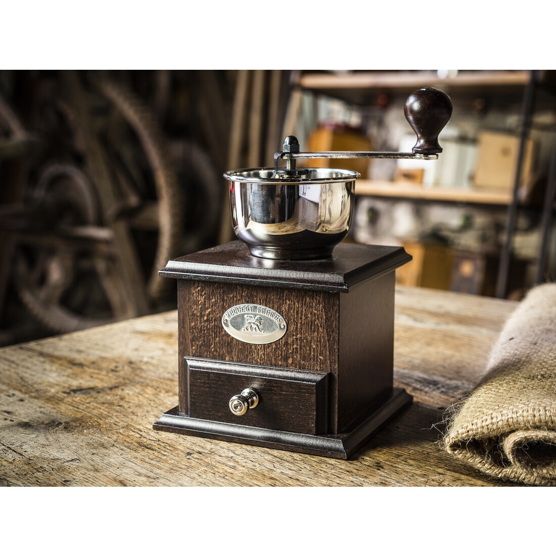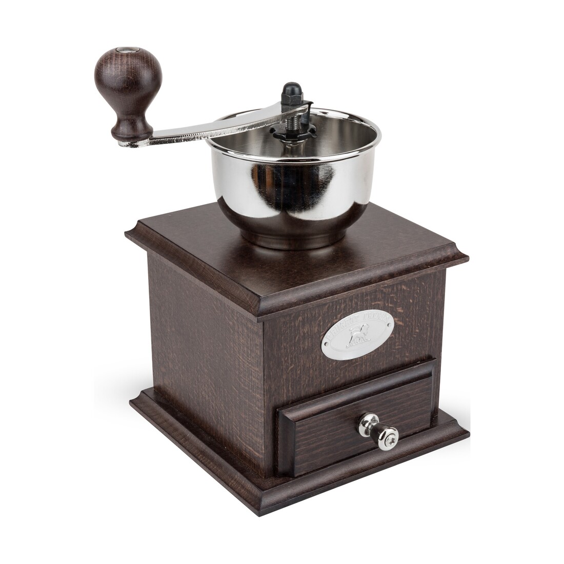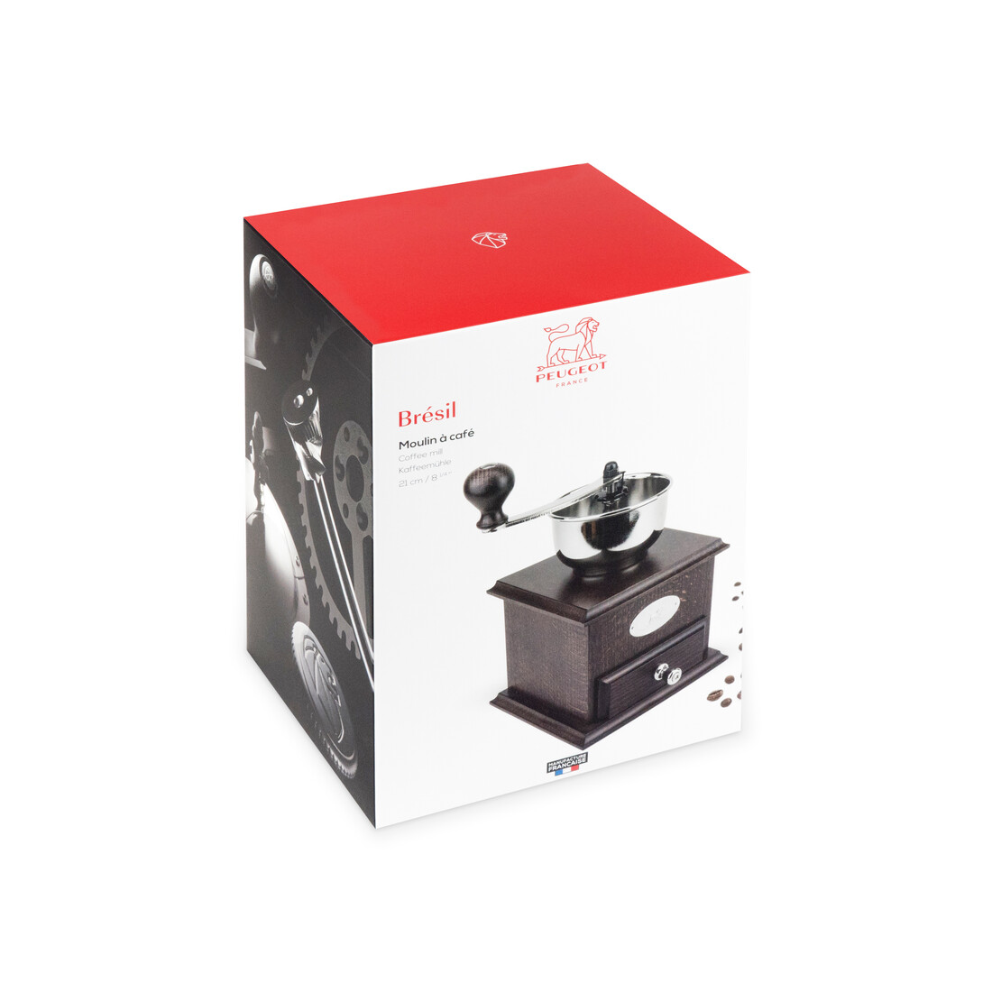 Versgemalen koffie maal je in een handomdraai met de Peugeot Bresil koffiemolen. Deze klassieke koffiemolen is gemaakt van beukenhout en heeft een maalwerk van hoogwaardig staal. Je stelt de grofheid gemakkelijk zelf in, zodat je altijd de gewenste maling hebt. Na het malen van de koffie vang je de gemalen koffie op in de lade onderin de koffiemolen. Maak van koffiezetten een echte beleving met de Peugeot koffiemolen!