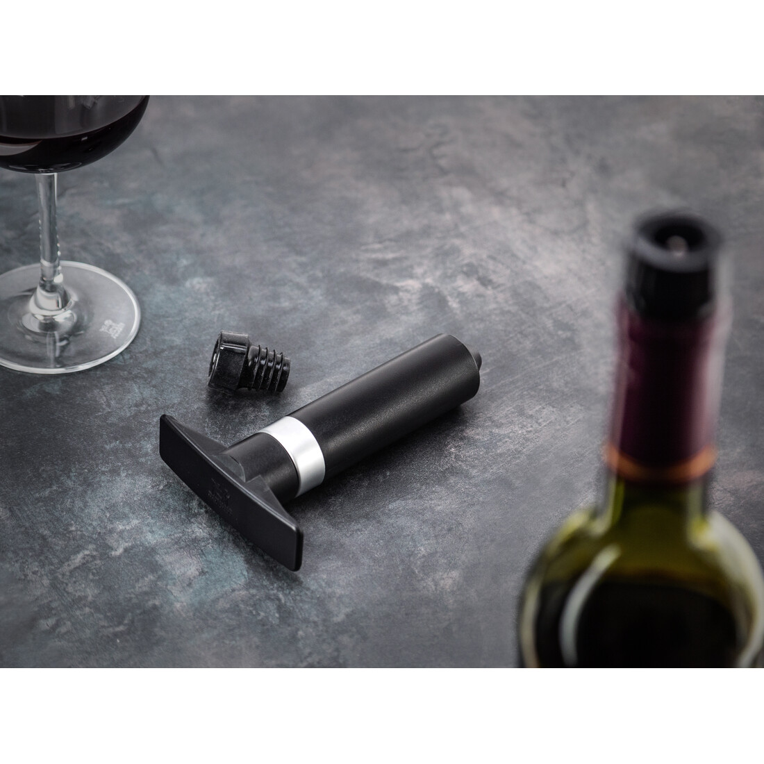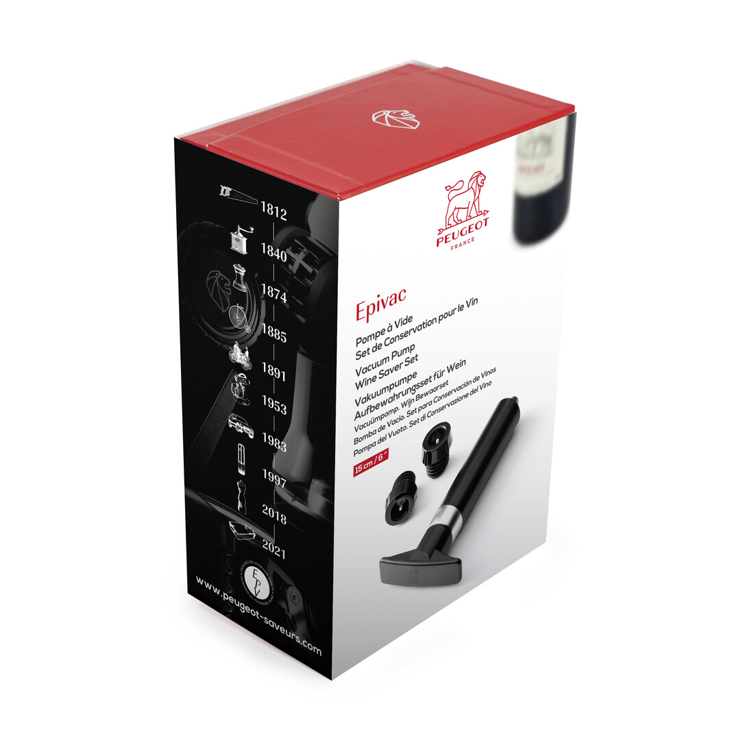 Vind jij het zonde een heerlijke fles wijn te openen, als je weet dat hij niet leeg gaat? De Peugeot Epivac vacuümpomp is hiervoor de oplossing. Met deze handige keukentool bewaar je wijn tot 8 dagen lang, zonder dat de smaak verloren gaat. De Epivac pompt de lucht uit de fles, waardoor de oxidatie beperkt wordt. Dit heeft als resultaat dat de smaak langer behouden blijft en jij ook een later moment nog kan genieten van een goed glas wijn. De vacuümpomp is bedoeld voor niet-mousserende wijn en de tool wordt geleverd met twee wijnpompen.Specificaties