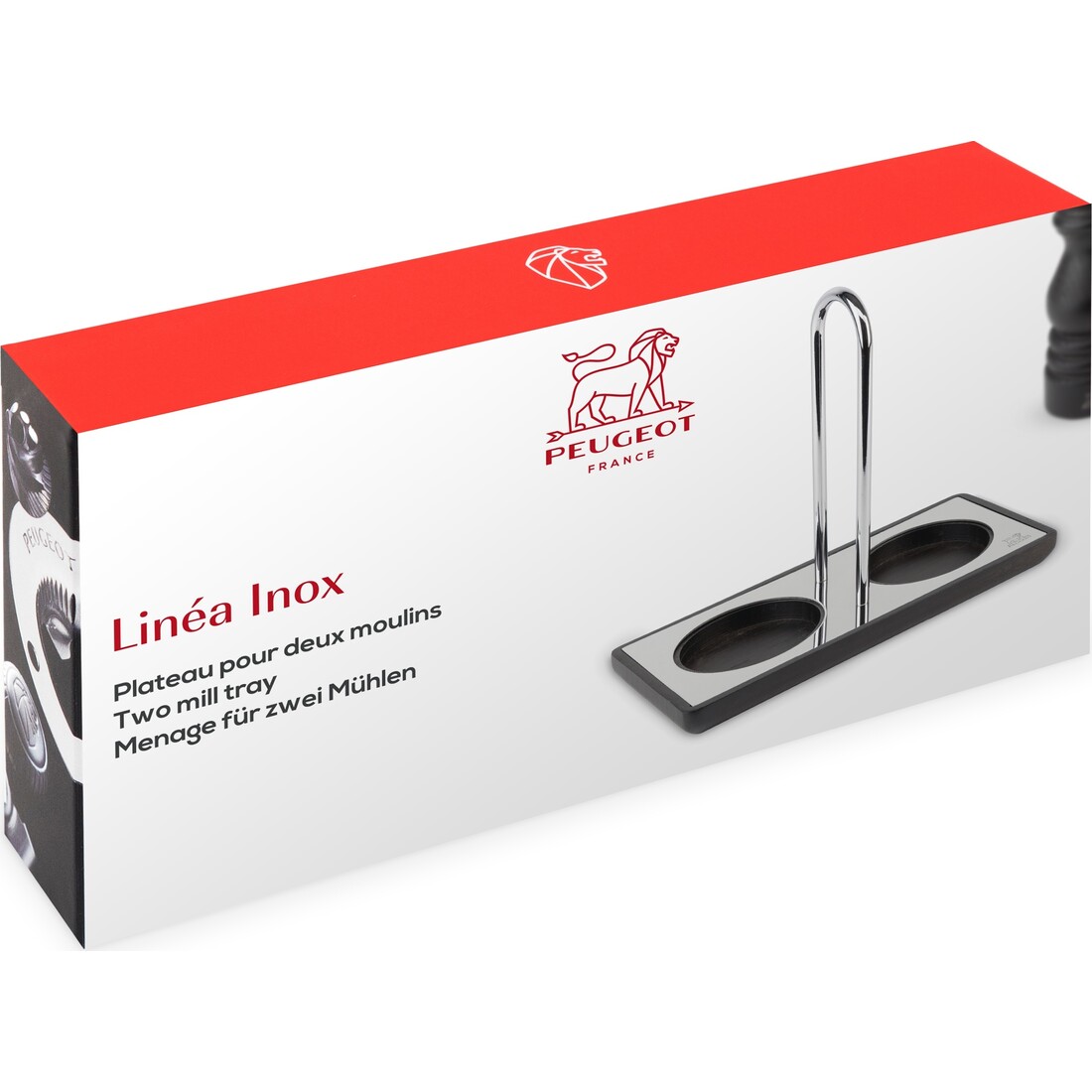 Vervoer, serveer en bewaar de Peugeot peper- en zoutmolens in stijl met een Linéa dienblad. Dit dienblad van in de kleur chocolade met inox details is gemaakt voor het smaakvolle duo. Je neemt het setje makkelijk mee door het bijpassnede handvat.
