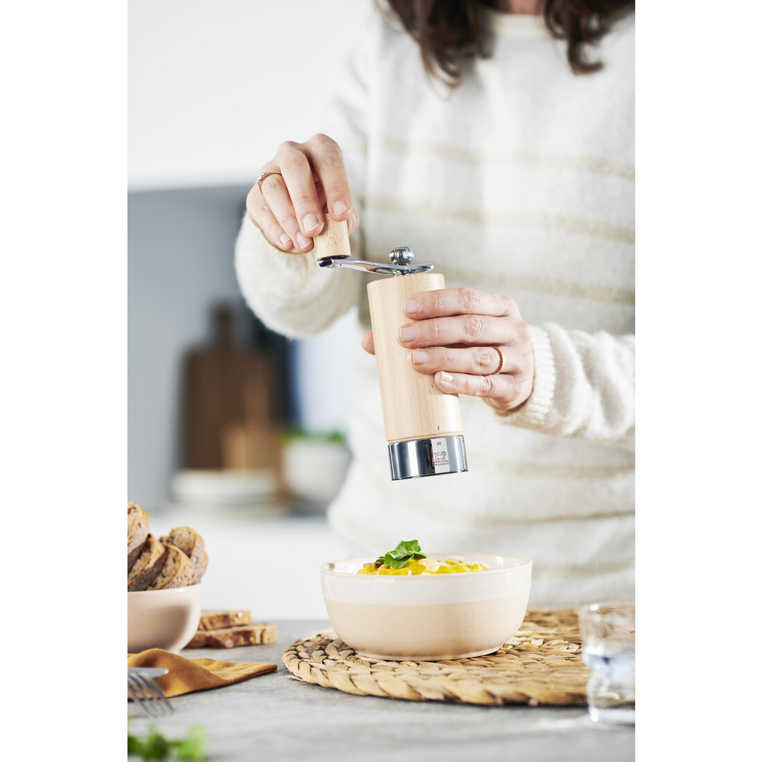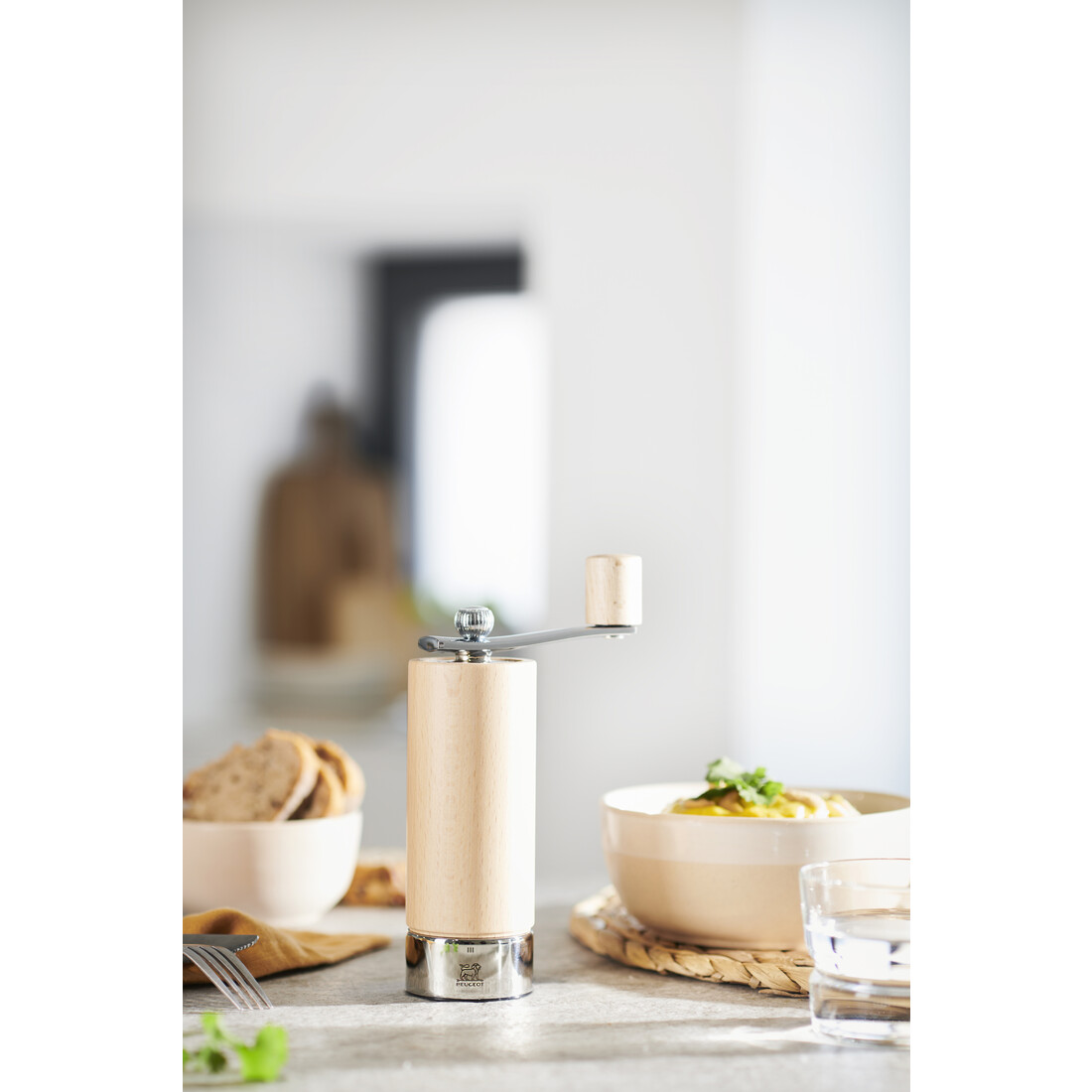 De Peugeot Isen manuele zoutmolen wordt gemaakt van beukenhout. Deze molen heeft een naturel kleur en een afmeting van 18 cm. Met de hendel aan de bovenzijde maal je gemakkelijk de gewenste hoeveelheid zout over het gerecht. De grofheid van de zout bepaal je met het gepatenteerde u'Select systeem van Peugeot.
