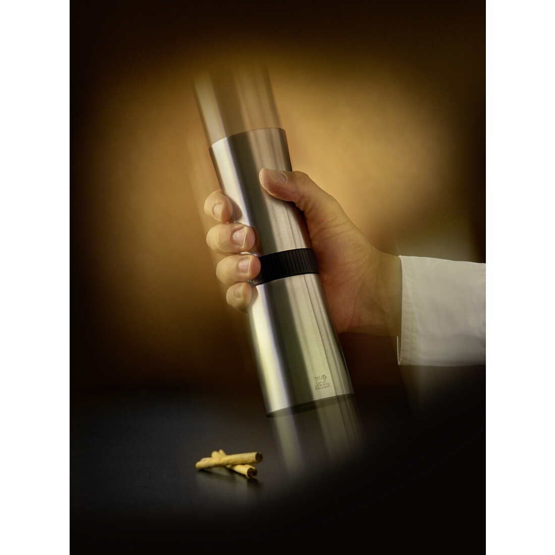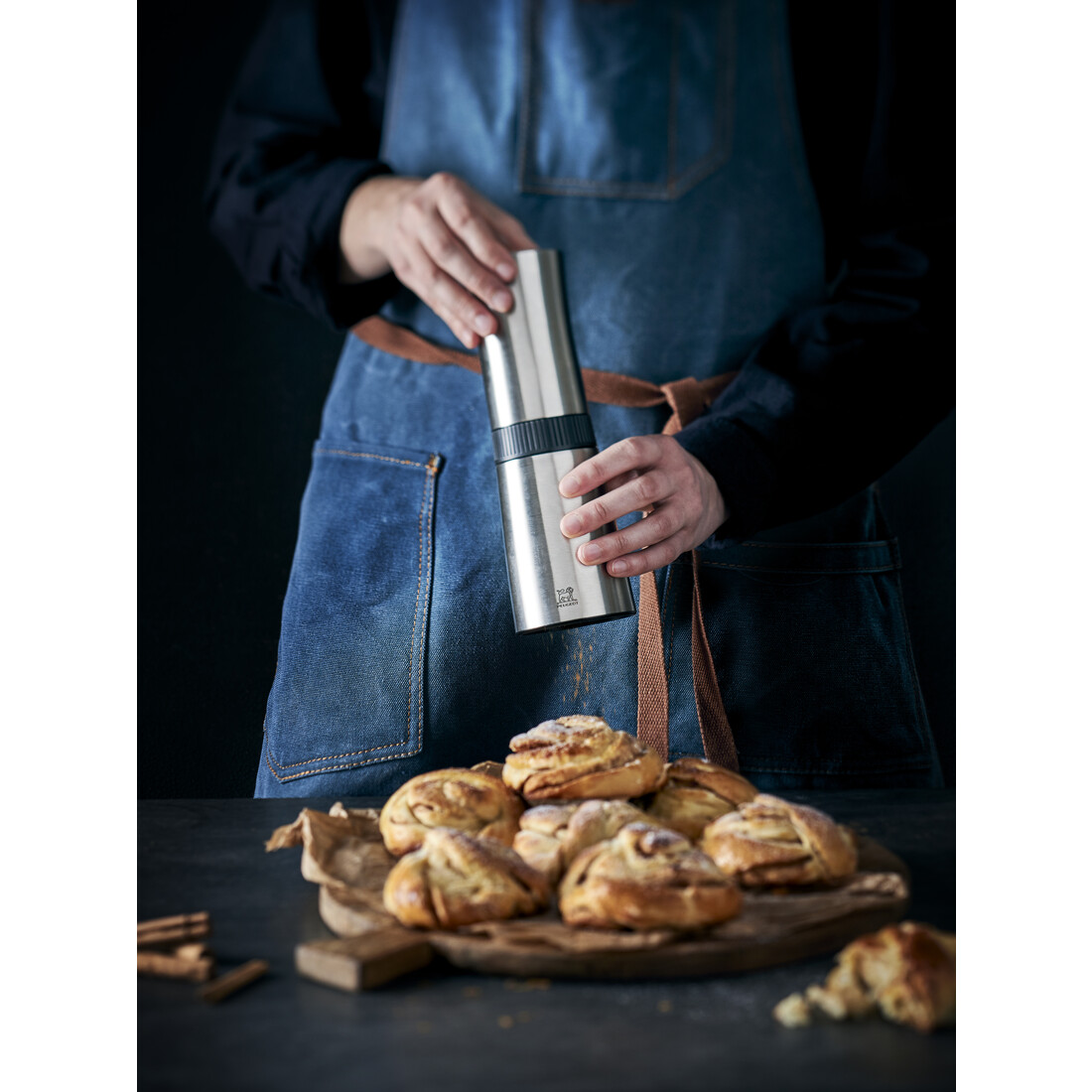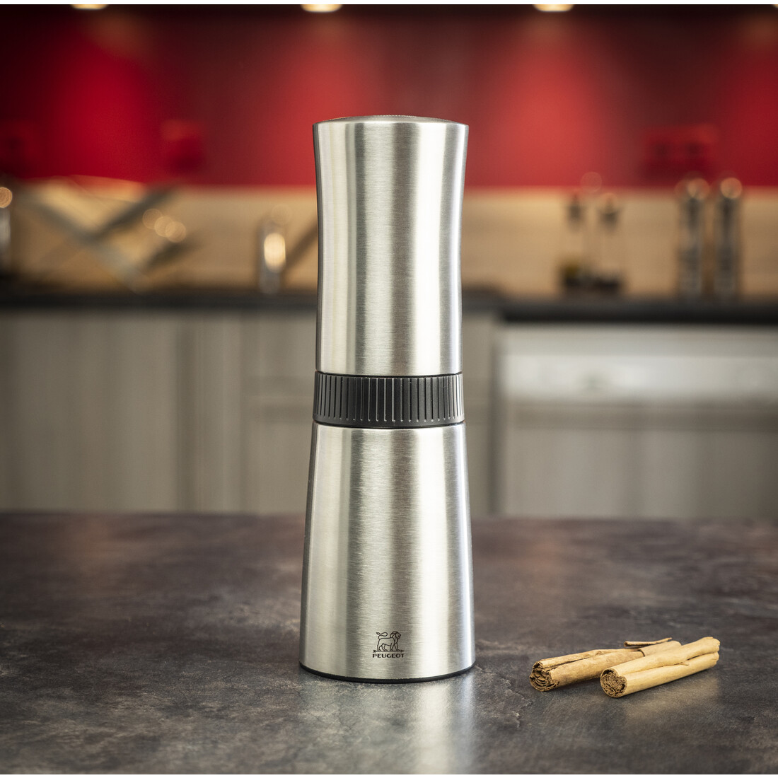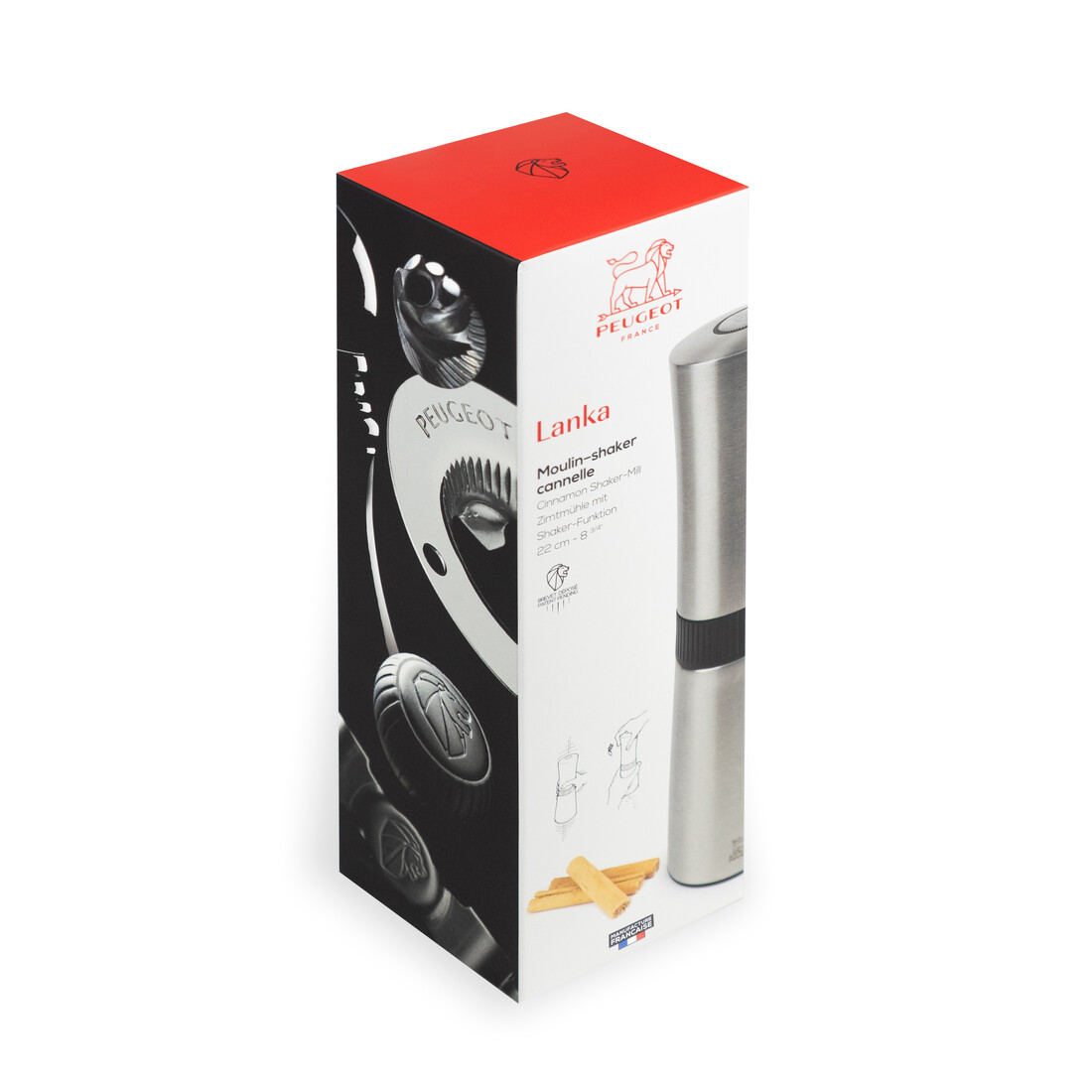 Het vermalen van kaneelstokjes doe je met een kwalitatieve Peugeot kaneelmolen. Deze Peugeot Lanka kaneelmolen heeft een zilverkleurige RVS look en heeft een hoogte van 22 cm. Je gebruikt de molen door de kaneelstokjes eerst in de 'shaker' te plaatsen. Hier worden de kaneelstokjes gebroken, waarna ze in het kwalitatieve Peugeot maalmechanisme fijngemalen worden. De roestvrijstalen kaneelmolen is erg hoog van kwaliteit en is gemakkelijk te bedienen. Maak ieder gerecht op smaak met de unieke kaneelmolen van Peugeot.