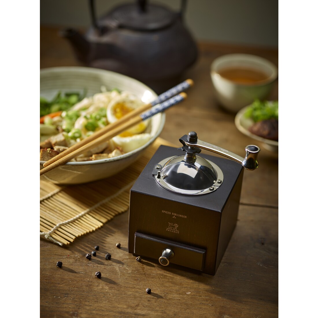 Vernoemd naar de Franse sterrenkok Olivier Roellinger zijn de Peugeot Roellinger pepermolens een klassiek plaatje. De molen is ontworpen met het oog op reizen en de geur van specerijen onderweg. De pepermolen heeft een traditionele uitstraling met een modern herontwerp van massief beukenhout in de kleur chocolade.