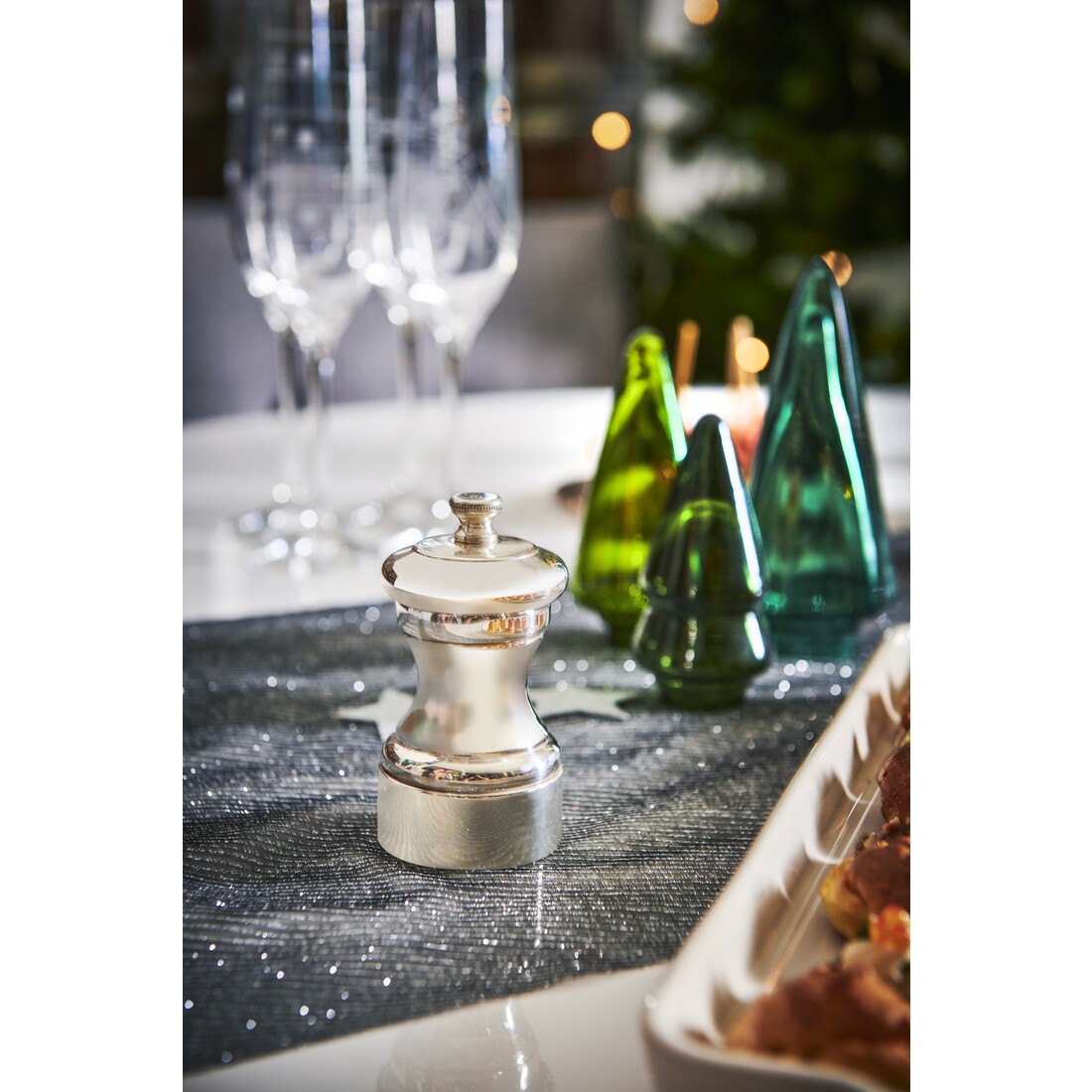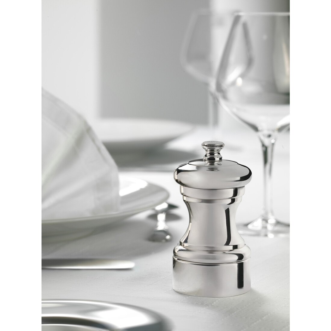 De molen heeft het krachtige maalwerk van Peugeot en een compact formaat van 10 cm. De Peugeot Mignonnette zoutmolen heeft een antiek ontwerp en het verzilverde deel heeft wat onderhoud nodig, namelijk het regelmatig oppoetsen om deze look te bewaren. Het is een waar pronkstuk in iedere keuken, die je gemakkelijk combineert met de Peugeot Mignonnette pepermolen.