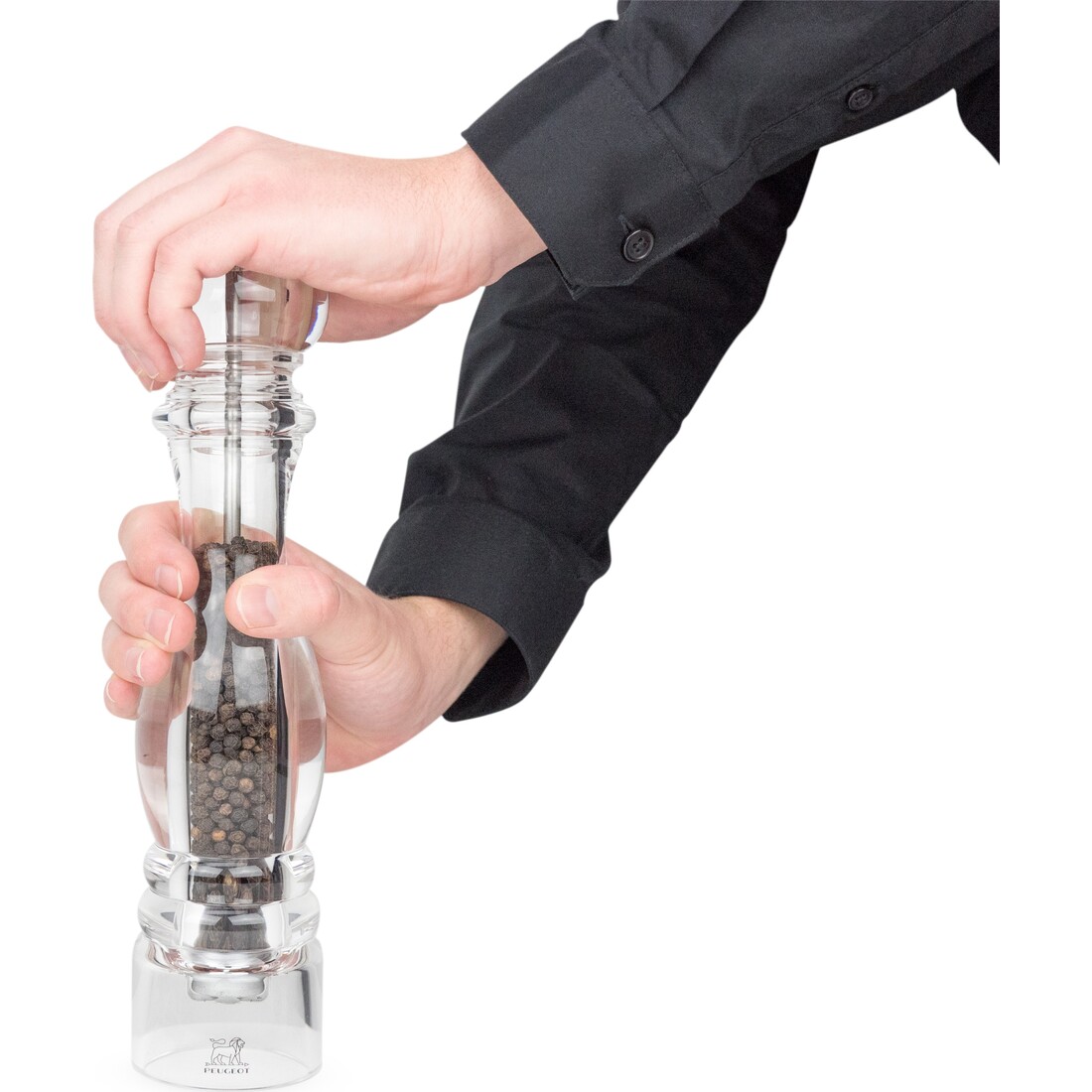 De Peugeot Nancy pepermolens zijn transparante molens met een tijdloos ontwerp. Vervaardigd uit acryl, waardoor je de smaakvolle peperkorrels goed kan zien. De handmatige pepermolen is voorzien van een instelknop op de kop, waarmee je de maalgraad bepaalt. Draai de knop strakker aan voor fijnere peperkorrels en losser voor grovere korrels.