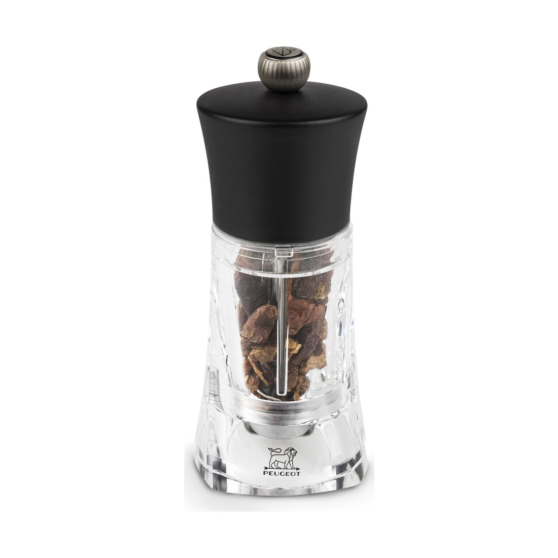 De Oléron pepermolen speciaal voor chili van Peugeot nodigt uit smaakvolle gerechten op tafel te zetten. De transparante body van de pepermolen wordt afgemaakt met een houten bovenkant in de kleur mat zwart. De pepermolen is voorzien van een instelknop, waarmee je de maalgraad bepaalt.