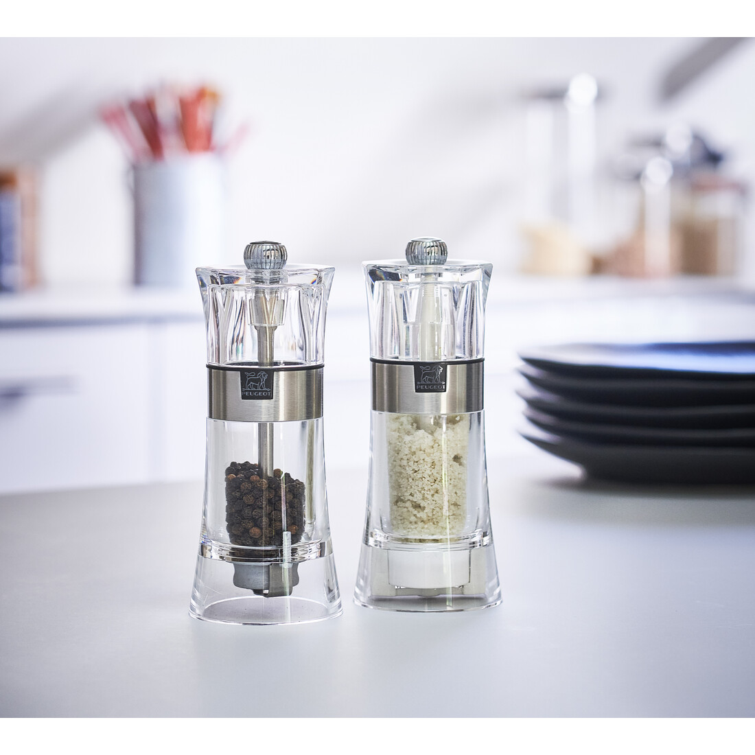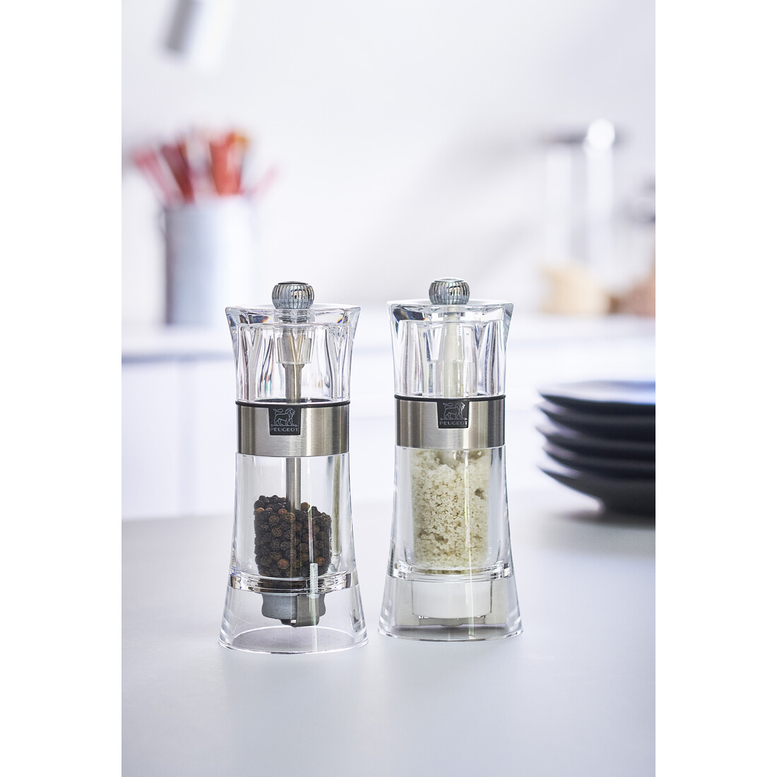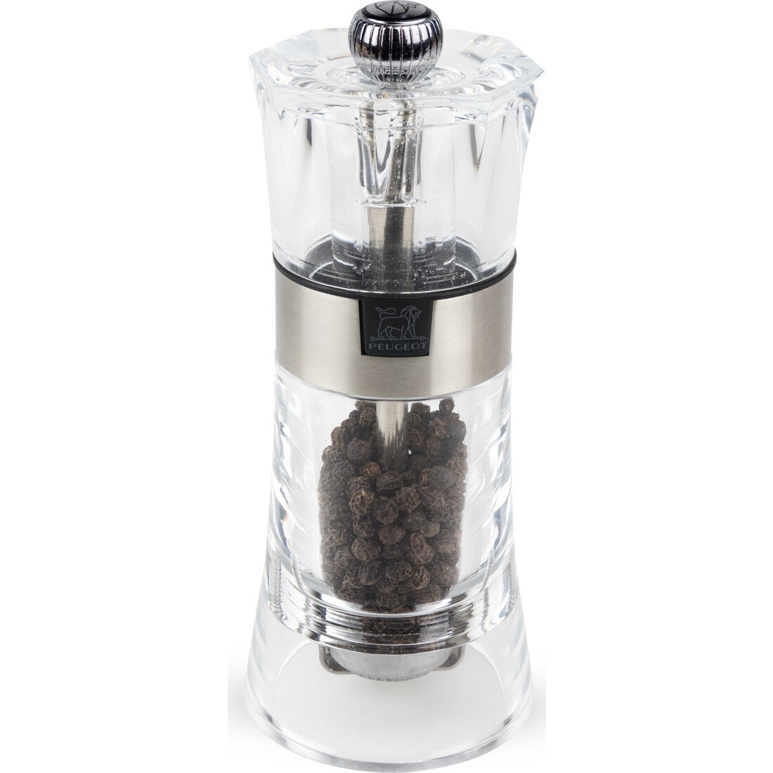 Met de Peugeot Oslo pepermolen kies je voor een stijlvolle combinatie van materialen. De pepermolen is volledig gemaakt van transparant acryl. De body is voorzien van inox details en dat geeft de pepermolen een moderne uitstraling. De transparante molen heeft een afmeting van 14 cm.