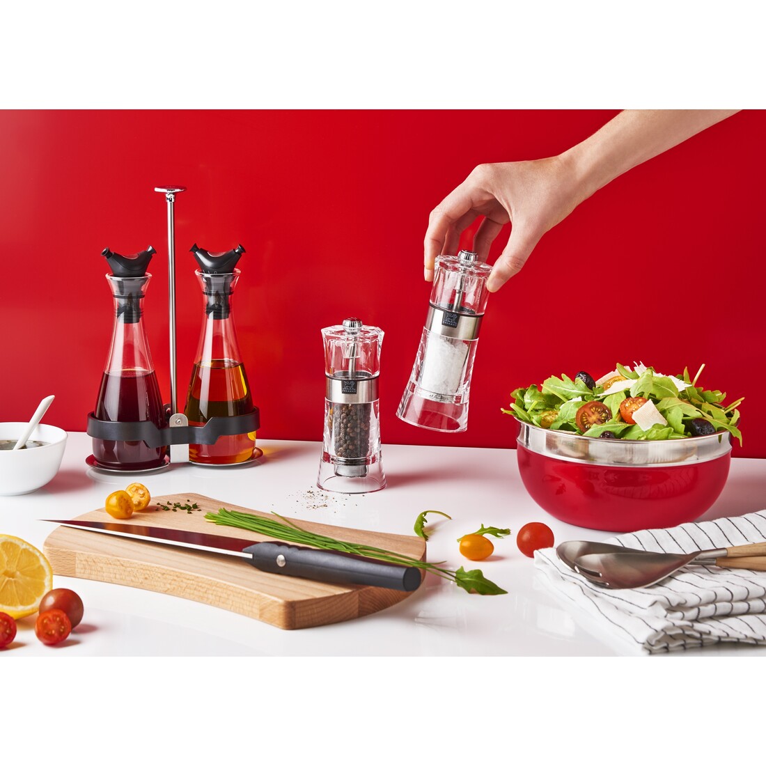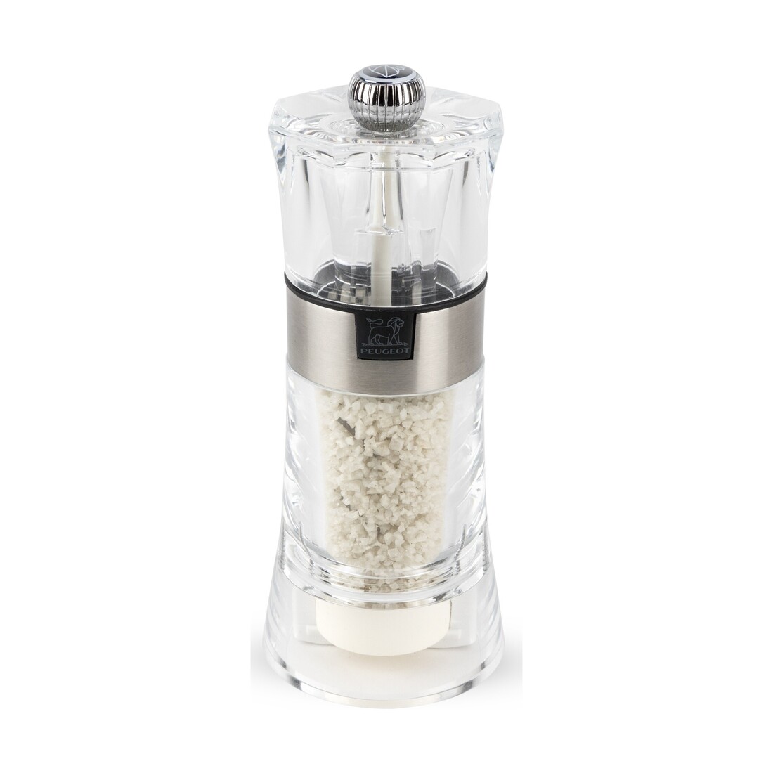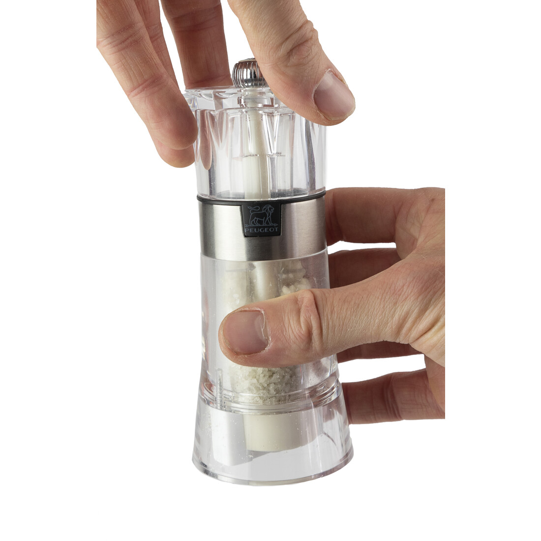 Met de Peugeot Oslo zoutmolen voor vochtig zout kies je voor een stijlvolle combinatie van materialen. De zoutmolen is volledig gemaakt van transparant acryl. De body is voorzien van inox details en dat geeft de zoutmolen een moderne uitstraling. De transparante molen heeft een afmeting van 14 cm.