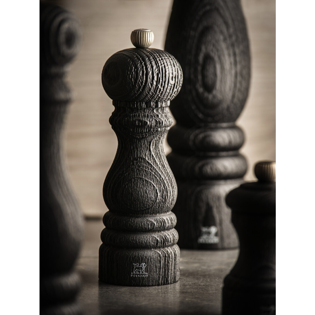 De klassieke Peugeot pepermolen, maar dan in een duurzamer jasje gestoken. Dat is de Peugeot Nature serie. Deze pepermolen is gemaakt van zwart gekleurd gerecycled hout en is 18 cm hoog. De unieke uitstraling van deze molen maakt van iedere tafel een echt feestje. De Peugeot Nature peper- en zoutmolens zijn zo bewerkt dat je de prachtige houtstructuur nog duidelijk op de molens ziet. Wij raden aan na enige tijd de pepermolen aan de binnenkant met een vochtige doek te reinigen om de levensduur van deze stijlvolle molen te onderhouden. Combineer deze klassieke pepermolen met de bijpassende Peugeot Nature zoutmolen!