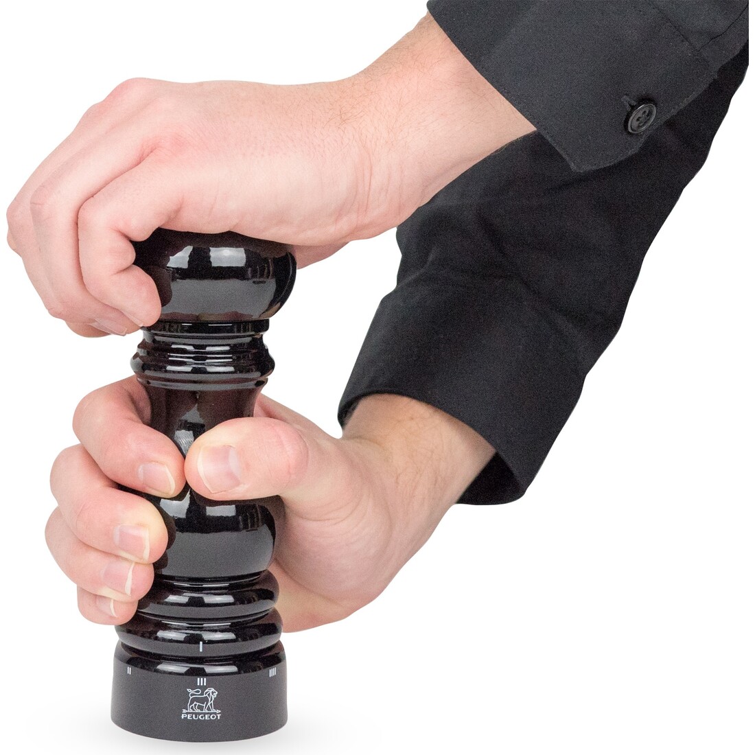 De Peugeot Paris u’Select pepermolen in een chique zwarte kleur is perfect voor iedere (hobby)kok. Met het u’Select-systeem stel je de maalgraad gemakkelijk en professioneel in, waardoor je altijd de perfecte smaak kiest voor jouw gerecht. Je stelt dit in door onderaan de molen te draaien. De slanke houten vorm ligt prettig in de hand en is daarom fijn in gebruik. De pepermolen heeft een afmeting van 18 cm en is stijlvol afgewerkt met een zilverkleurige knop met het kenmerkende logo van Peugeot daarop. Het is een veelzijdige molen voor gebruik in de keuken e´n op tafel.