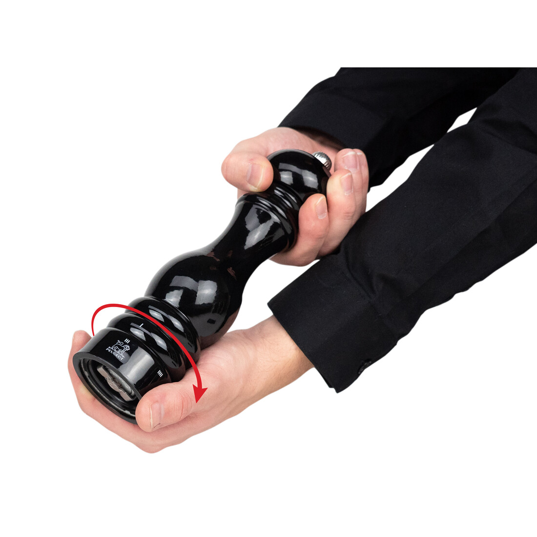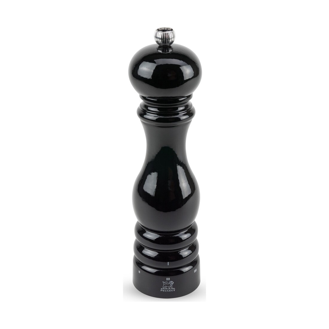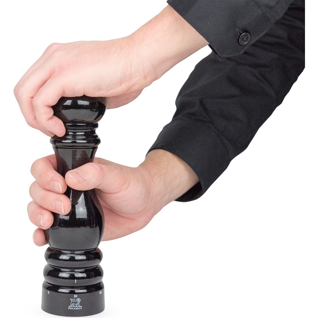 De Peugeot Paris u’Select pepermolen in een chique zwarte kleur is perfect voor iedere (hobby)kok. Met het u’Select-systeem stel je de maalgraad gemakkelijk en professioneel in, waardoor je altijd de perfecte smaak kiest voor jouw gerecht. Je stelt dit in door onderaan de molen te draaien. De slanke houten vorm ligt prettig in de hand en is daarom fijn in gebruik. De pepermolen heeft een afmeting van 22 cm en is stijlvol afgewerkt met een zilverkleurige knop met het kenmerkende logo van Peugeot daarop. Het is een veelzijdige molen voor gebruik in de keuken e´n op tafel.