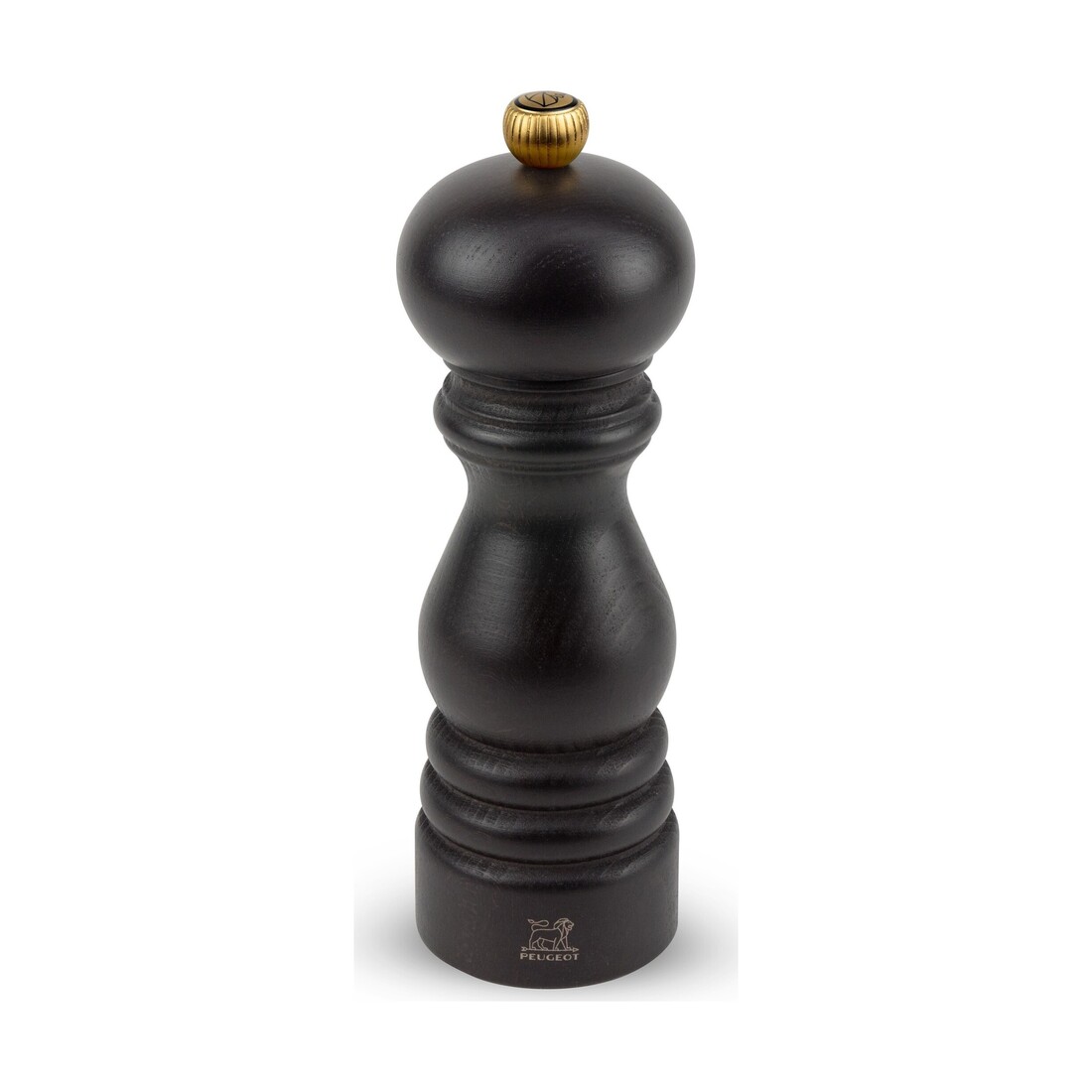Eén van de favorieten van chefs over de hele wereld zijn de manuele Peugeot Paris pepermolens. Deze molen heeft een afmeting van 18 cm en is gemaakt van beukenhout in de kleur chocolade. De sierknop die zich bovenop de molen bevindt laat je de maalgraad instellen