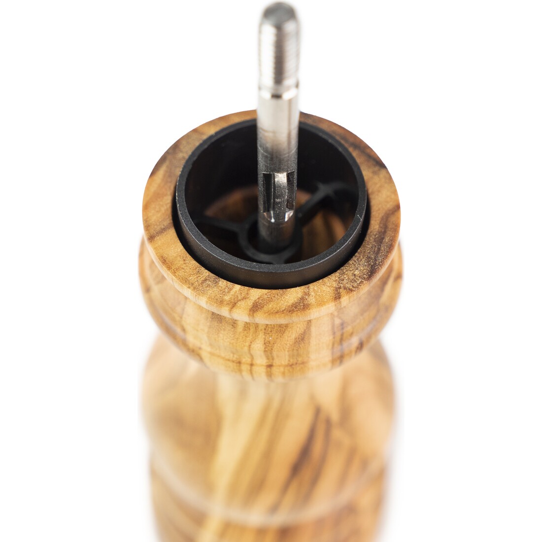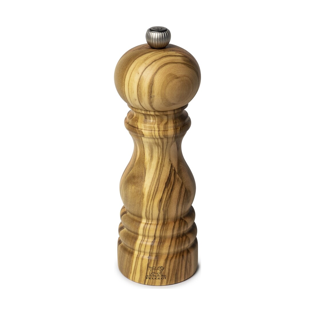 Eén van de favorieten van chefs over de hele wereld zijn de manuele Peugeot Paris pepermolens. Deze molen heeft een afmeting van 18 cm en is gemaakt van olijfhout. De sierknop die zich bovenop de molen bevindt laat je de maalgraad instellen